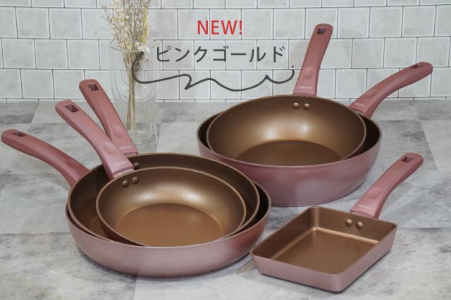 既存のカラーに加え、新たにピンクゴールドが登場しました。落ち着いた色味なので使いやすく、おしゃれなキッチンにもなじみます。