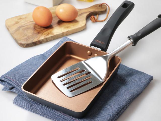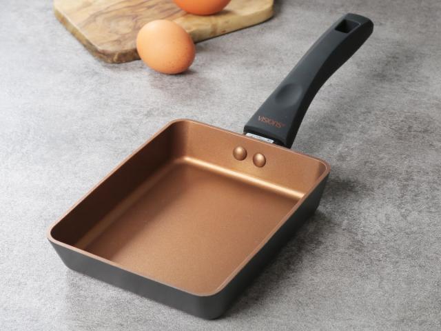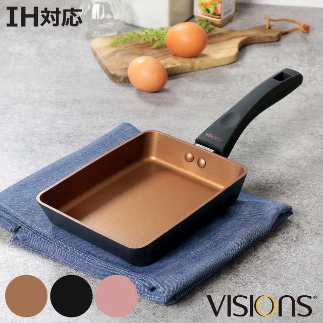 玉子焼き器 13cm×18cm IH対応 VISIONS GOLD Coating 卵焼き フライパン ( ガス火対応 オール熱源対応 卵焼き器 玉子焼きフライパン 金属ヘラOK ふっ素加工 エッグパン 玉子焼き 朝食 弁当 時短調理 軽量 軽い アルミ製 )