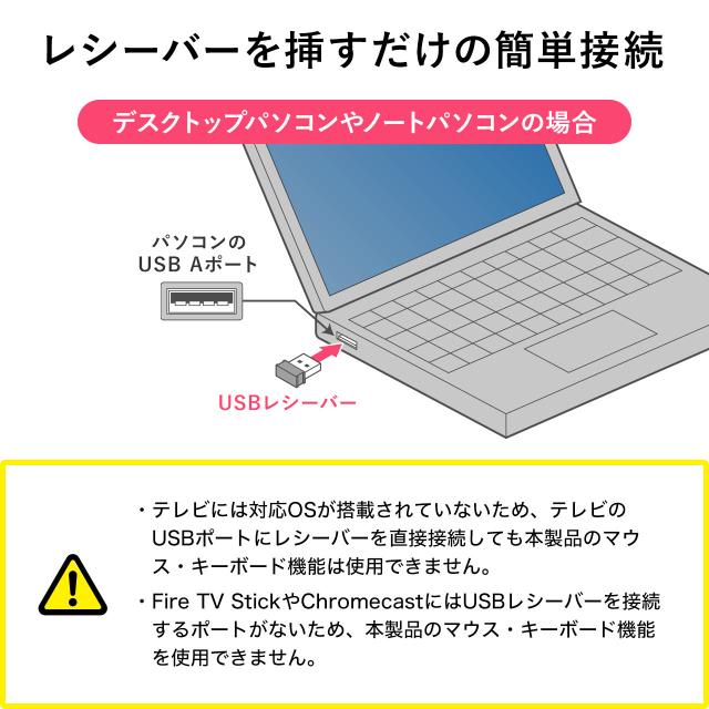 ※テレビのUSBポートにレシーバーを接続してもマウス・キーボード機能は使用できません。