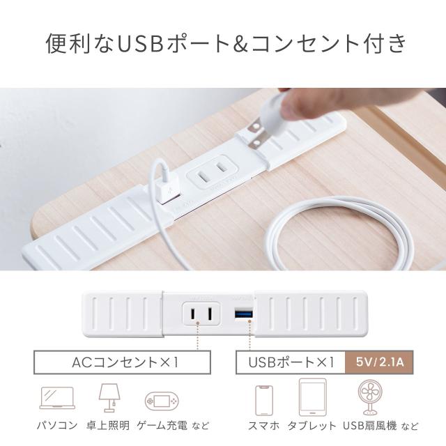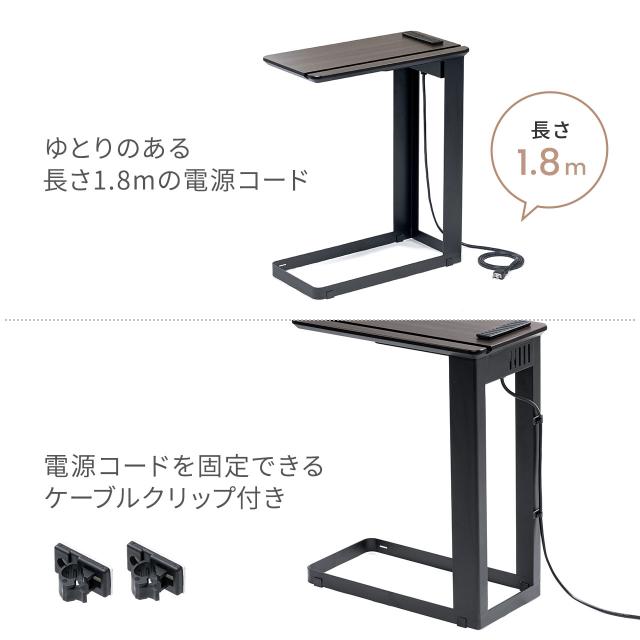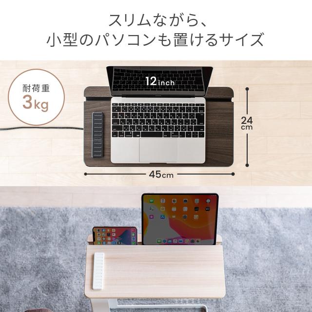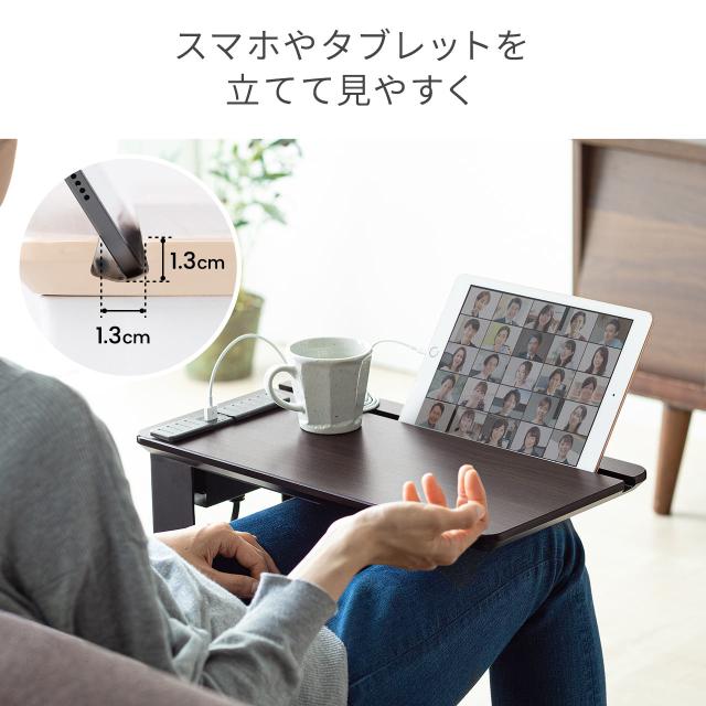 サイドテーブル コンセント 充電用USB端子 スマホ タブレットスタンドつき 木目調[100-DESKH057]