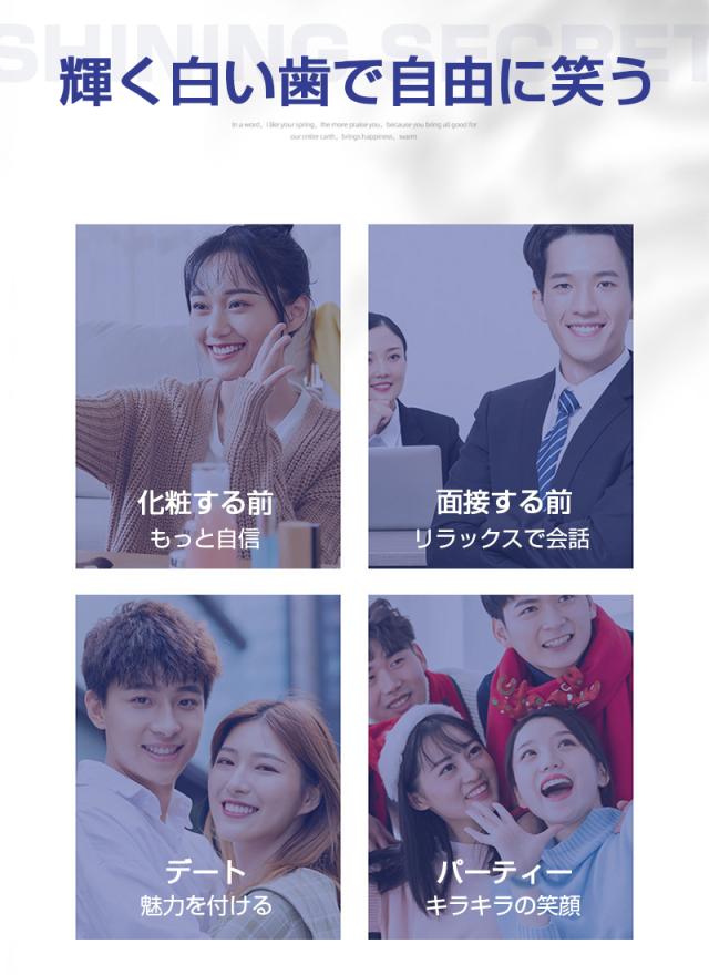 【歯専用美白シートパックで、笑顔に自信を!】自宅で簡単にセルフケアができる、パックタイプのホワイトニングシートです。貼りやすくて、歯にしっかりと密着させられます。歯の集中美白で、笑顔あふれる毎日を応援します。