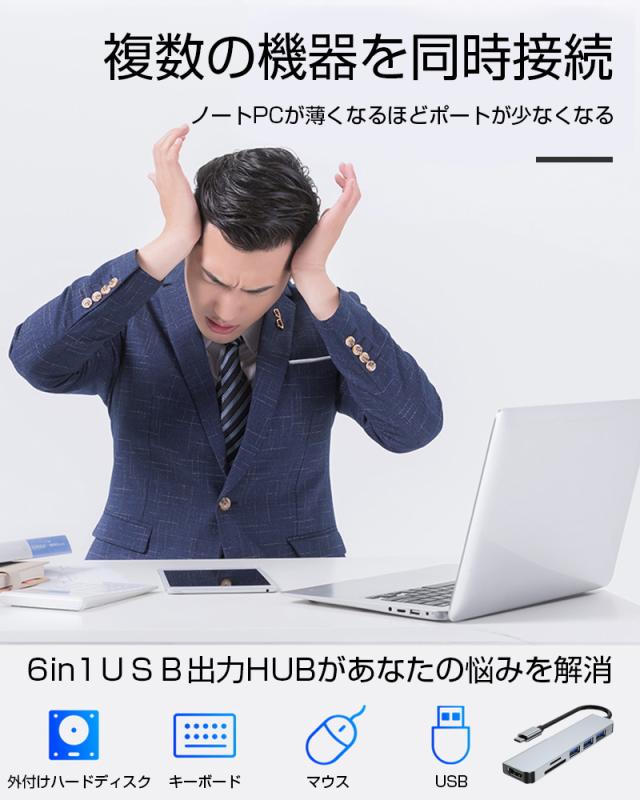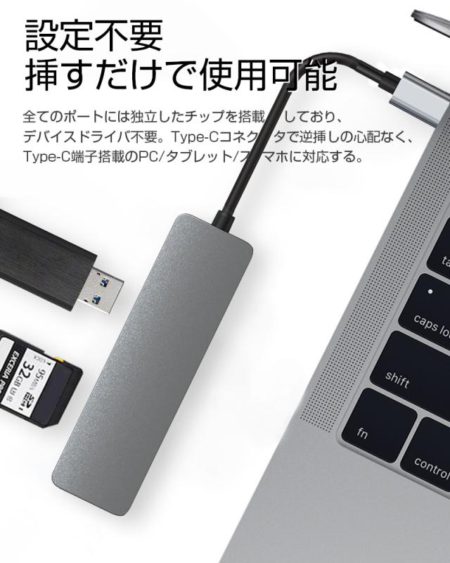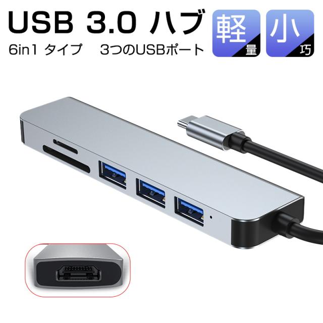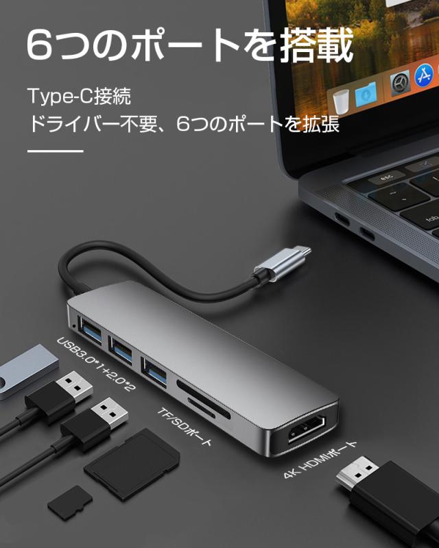 USB-C ハブ 6in1ハブ ドッキングステーション 変換アダプター 3つのUSB ポート スロット搭載 TFカードリーダー 耐久性抜群 iPhone17/iPhoneAir対応 【PL保険加入済み製品・安心】