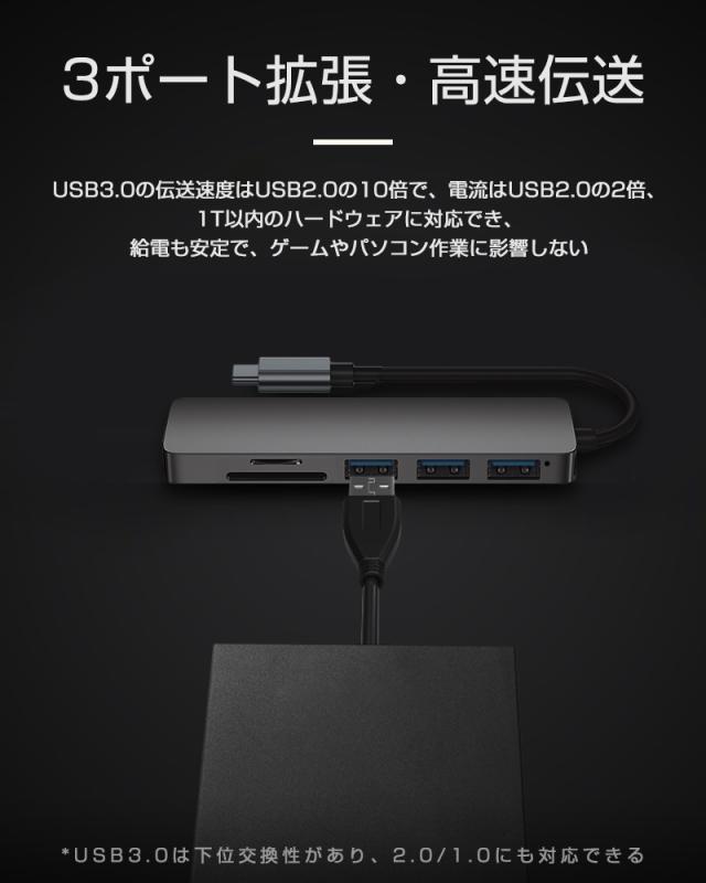 【SD・TFカードリーダー搭載】SD・TFカードリーダーの搭載によって、データの写しが便利です。デジタルカメラの写真やビデオをスマホ、タブレット、パソコンに高速伝送できます。操作が簡単で設定不要、パソコンやスマホのType Cポートに接続するだけですぐに読み込みできます。