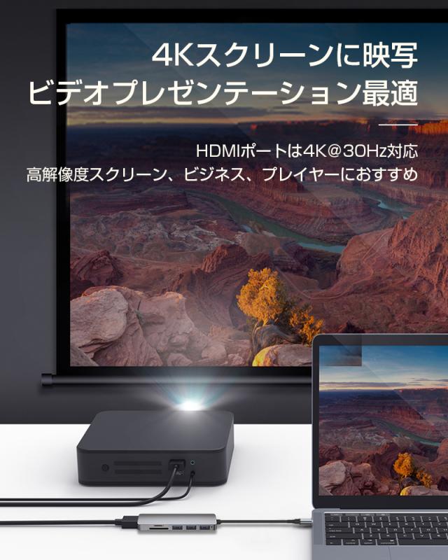 【HDMI出力ポート搭載】4K解像度に対応できるHDMI出力ポートが搭載しております。HDMI出力端子が搭載して無いパソコンにもテレビや大型モニター等に接続出来、高解像度の動画や写真を映し出し、より大きな画面で画像や映画を楽しめます。