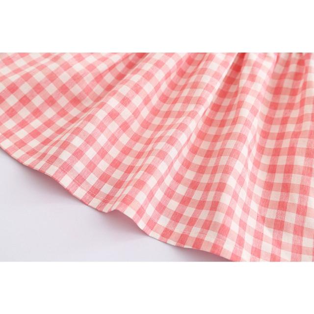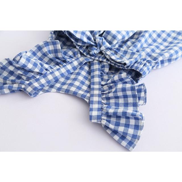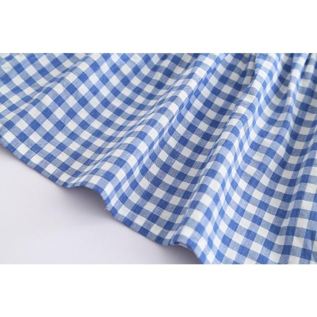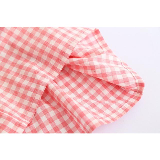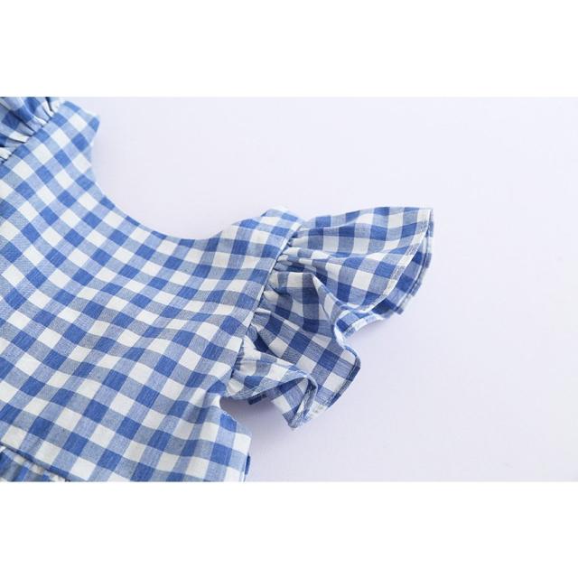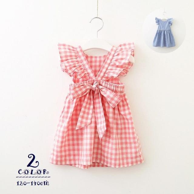 ワンピース キッズ 子供 ジュニア ノースリーブ フリル バックリボン フレア ラウンドネック ギンガムチェック かわいい 女児