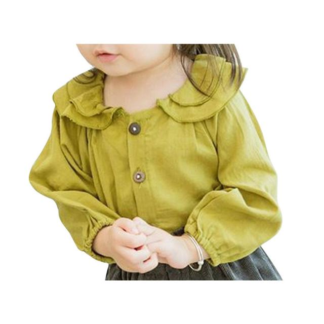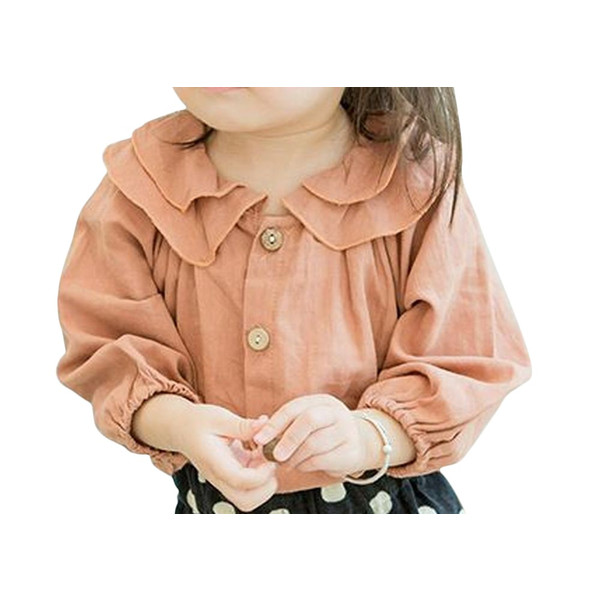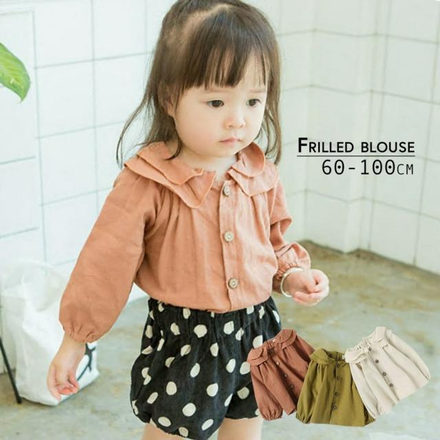 ブラウス シャツ 長袖 トップス 重ね襟 前ボタン ラウンドネック タック使い ナチュラル 秋物 秋カラー 女の子 女児 子供 ベビー キッズ 子ども