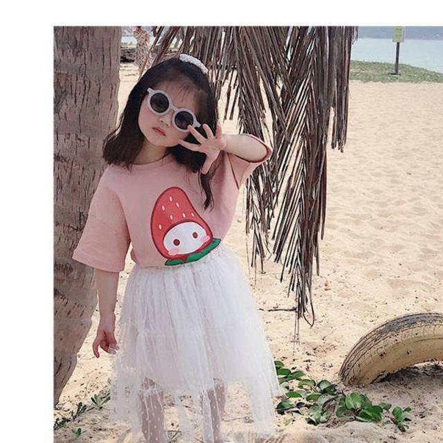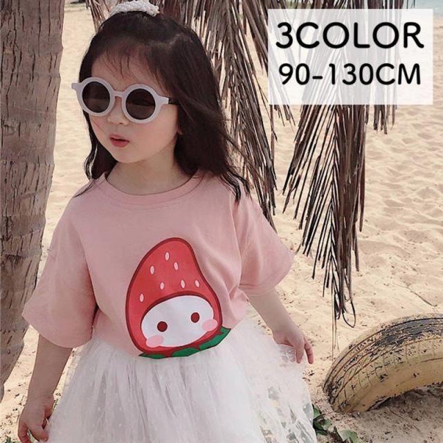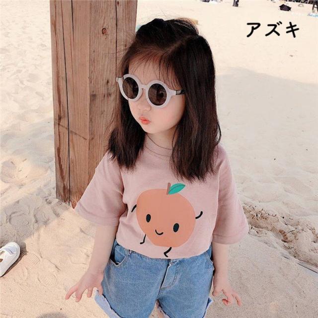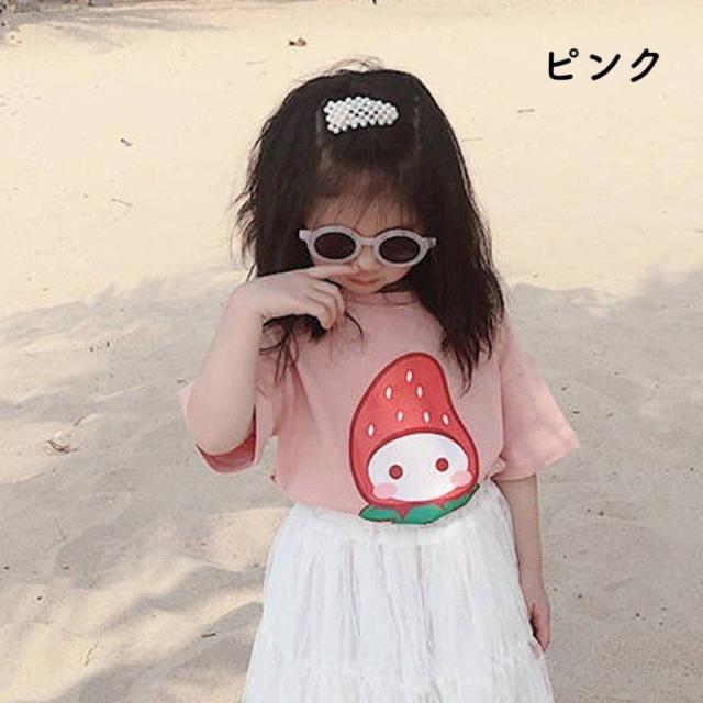 半袖Tシャツ カットソー キッズ 子供服 子供用 男の子 女の子 夏服 春服?トップス ラウンドネック プリント ピンク イエロー お出かけ かわいい