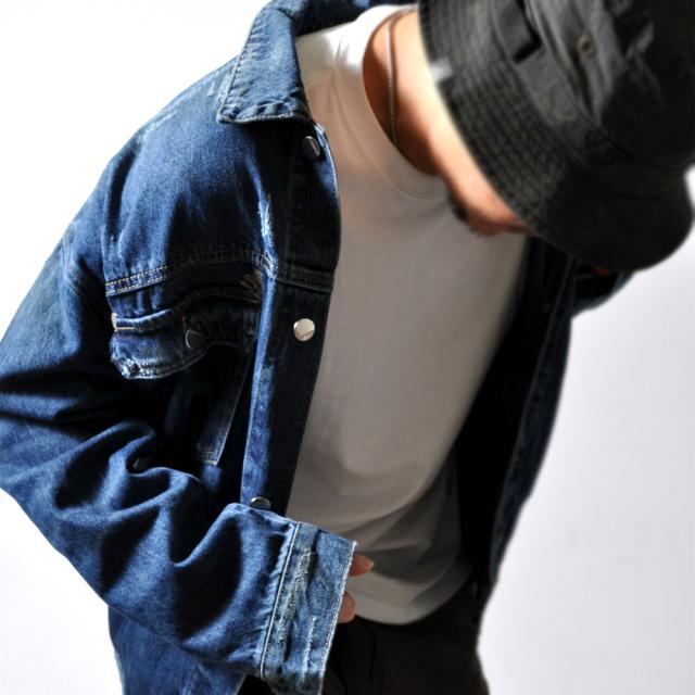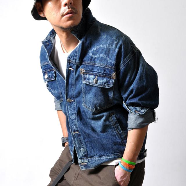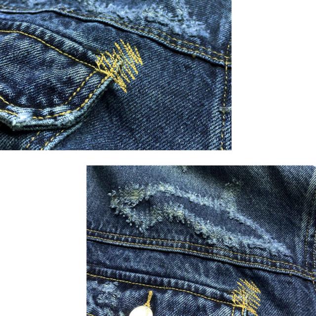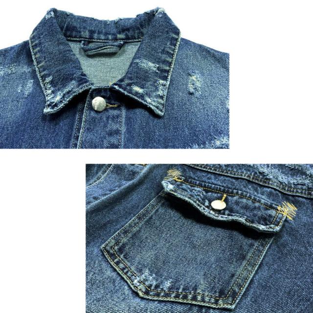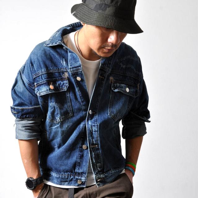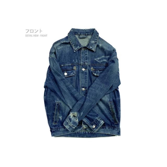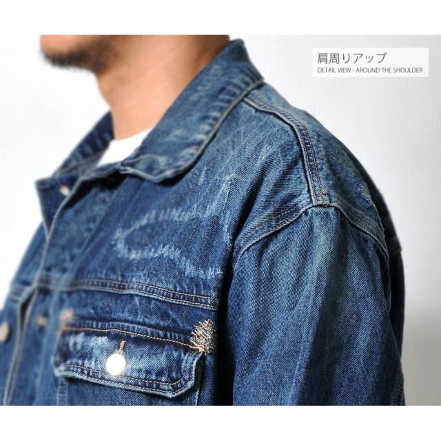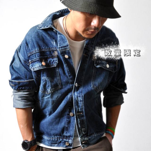 数量限定 デニムジャケット メンズ ヴィンテージ ダメージ加工 Gジャン ライトアウター#T618 BL