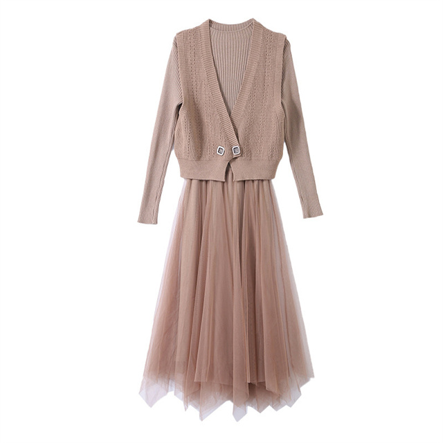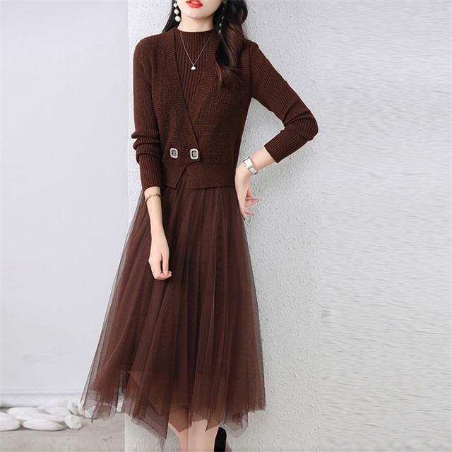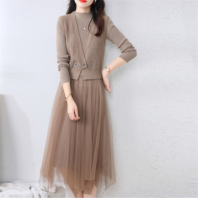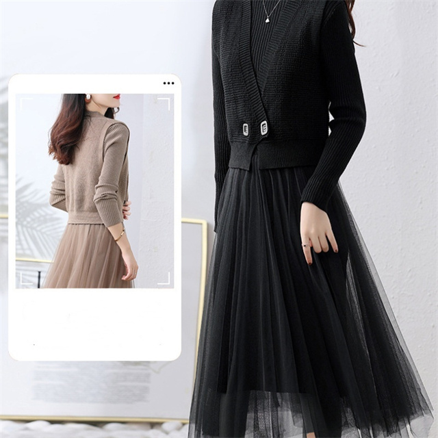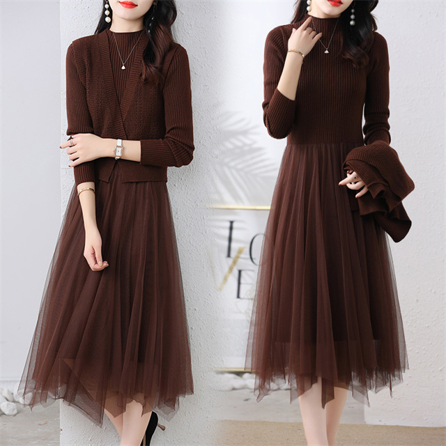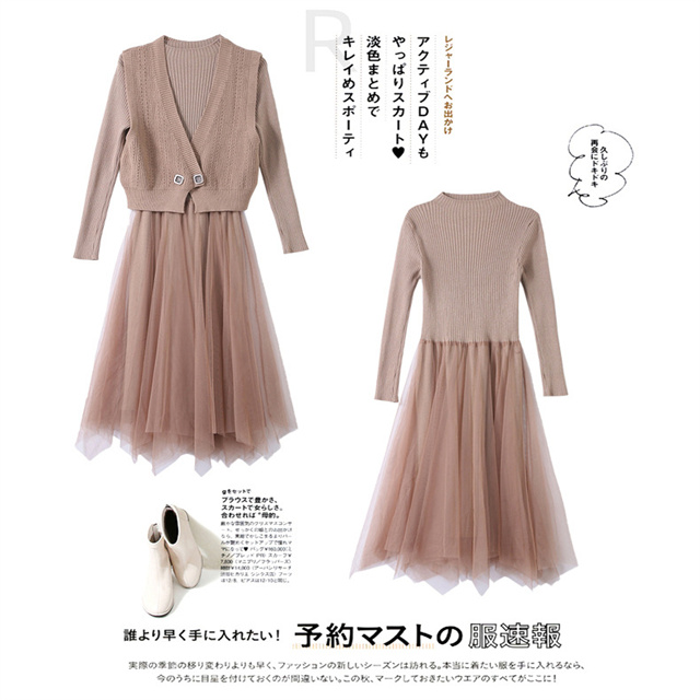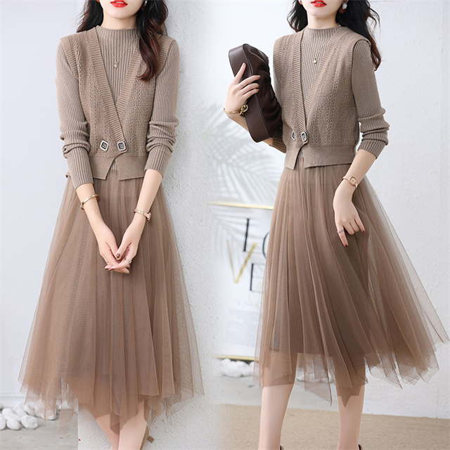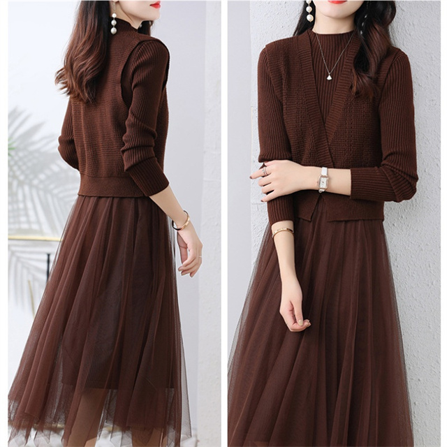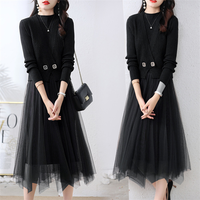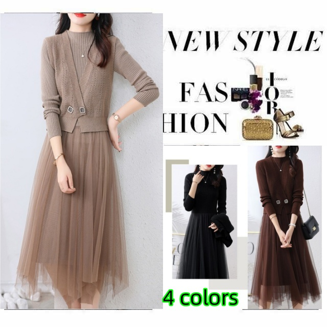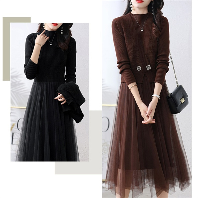 ニットワンピース セットアップ レディース 秋冬 長袖セーター スカート ワンピース きれいめ 大きいサイズ オシャレ 膝丈 通勤 着痩せ 4色 二次会 入学式 新作