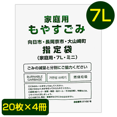 【郵送】 向日市・長岡京市・大山崎町 指定 ゴミ袋 7L (20枚×4冊) MNO-K7T 送料無料 07542