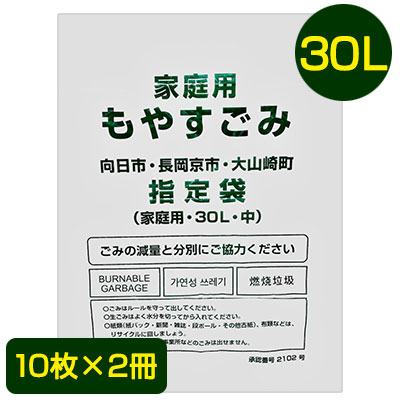 【郵送】 向日市・長岡京市・大山崎町 指定 ゴミ袋 30L (10枚×2冊) MNO-K30 送料無料 07544
