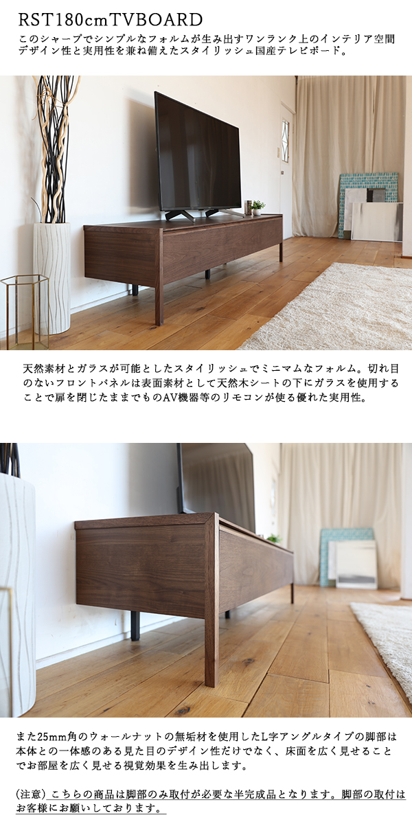 RST テレビ台 180cm テレビボード ブラウン ウォールナット無垢材 幅 1800 奥行 445 高さ 407 mm 国産 日本製 ローボード