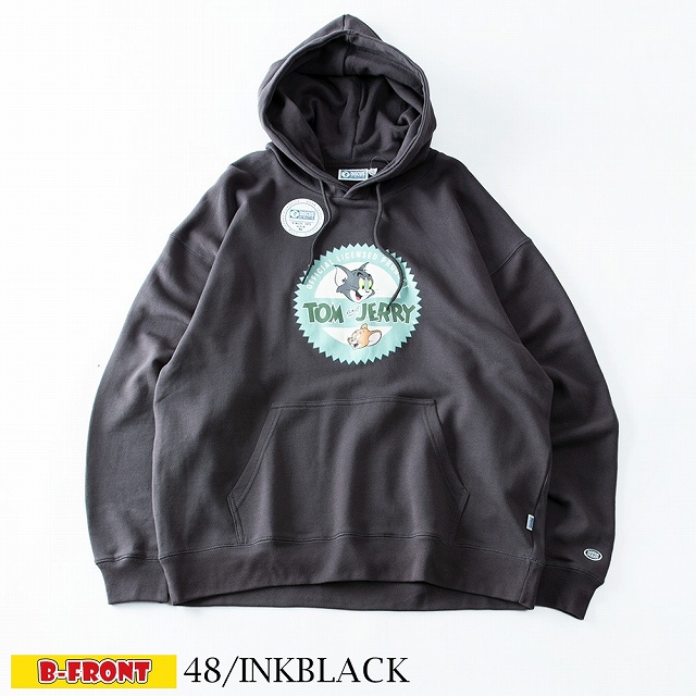 パーカー メンズ DISCUS スエット プルパーカー シンプル プリント ヘビーウエイト スウェット トムとジェリー ビッグサイズ 肉厚 大きめ 白 黒 M L 大きいサイズ
