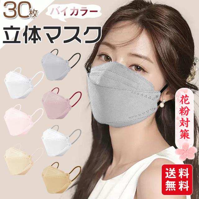 春新作 立体マスク 小顔3Dマスク 立体 30枚入 ひんやり 息がしやすい バイカラー 不織布マスク くすみカラー パステルカラー 小さめ 3層 口紅が付きにくい ポイント消化 ポイント消化 母の日