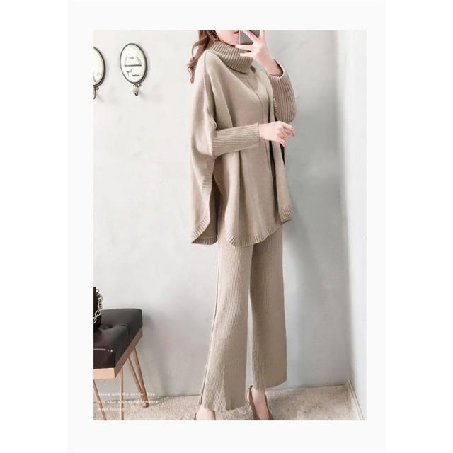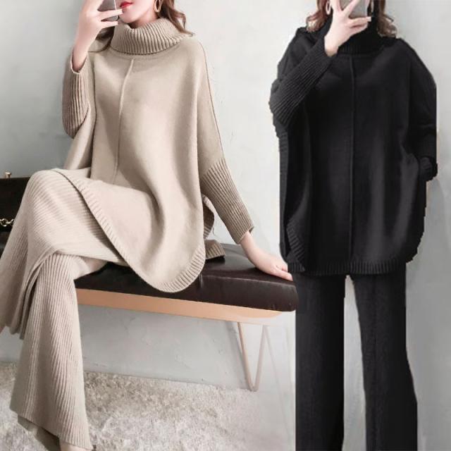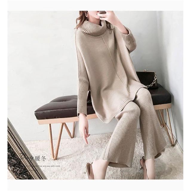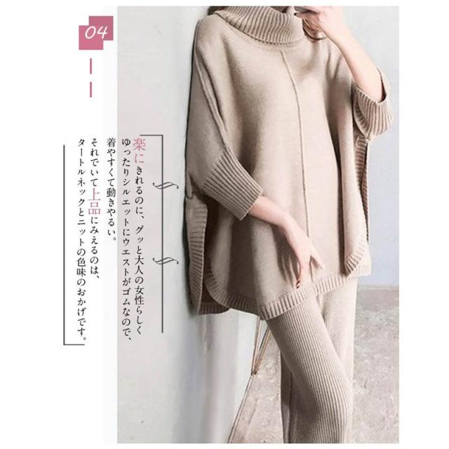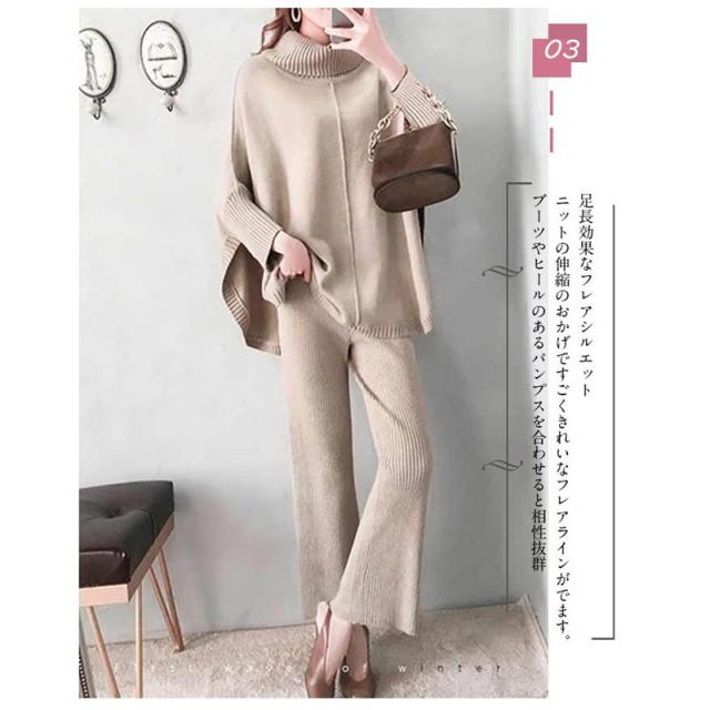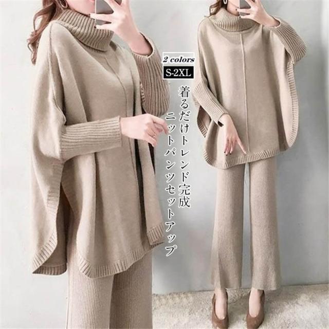 セットアップ ニットセーター 秋冬 レディース ワイドパンツ ニットパンツ 2点セット 30代 40代 50代 お洒落 ママ トップス 入園式 卒業式 セレモニー 上品