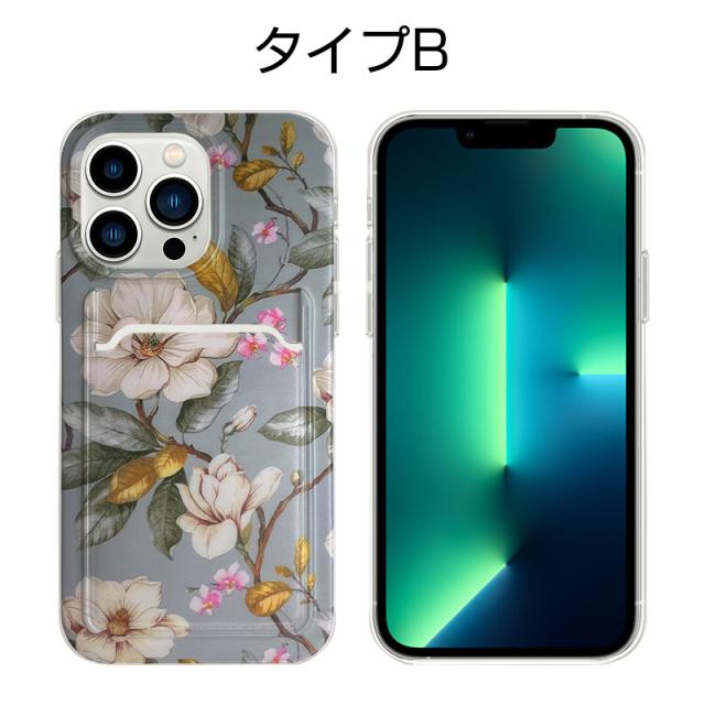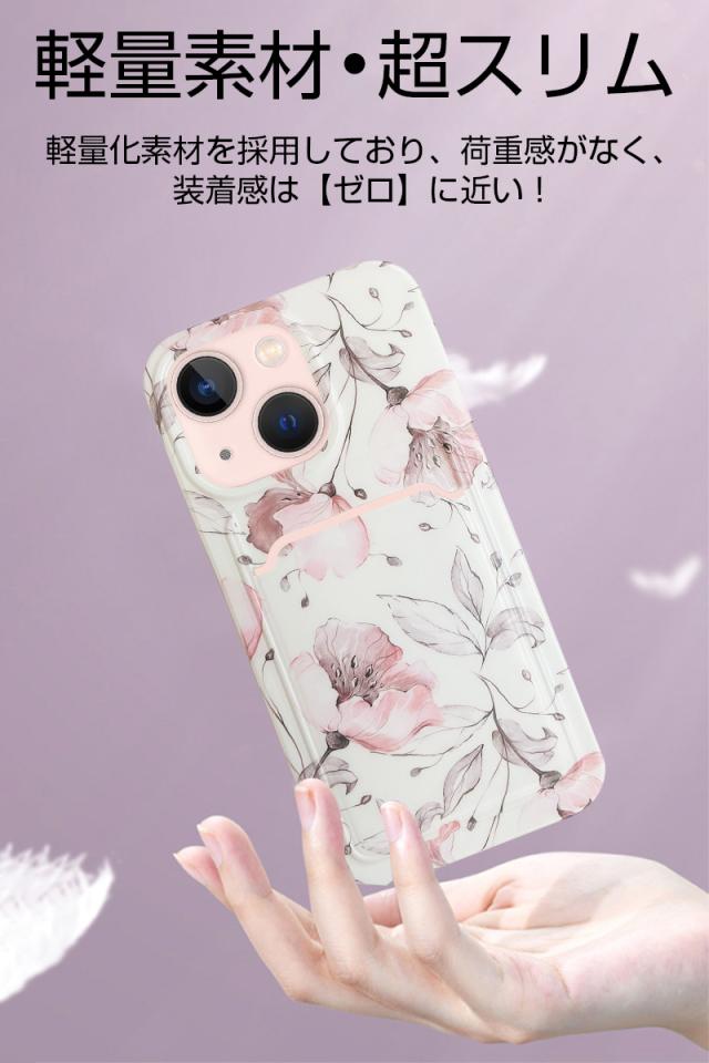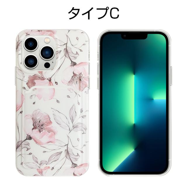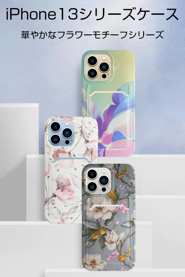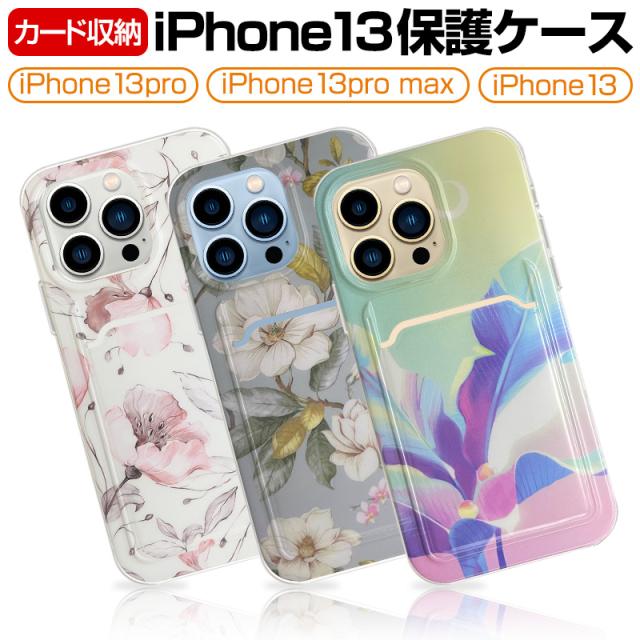 iPhone13 iPhone13Pro iPhone13ProMax 保護ケース TPUケース 花柄 カメラ保護 ソフト カード収納付 耐衝撃ケース シリコンケース