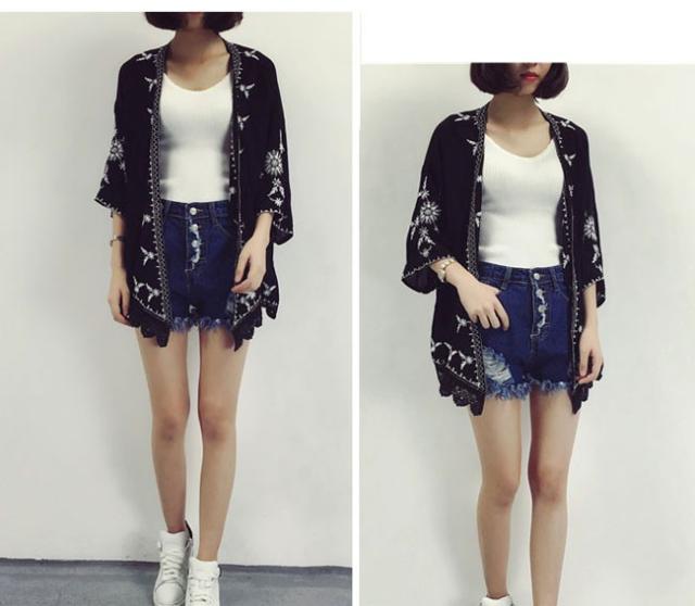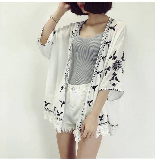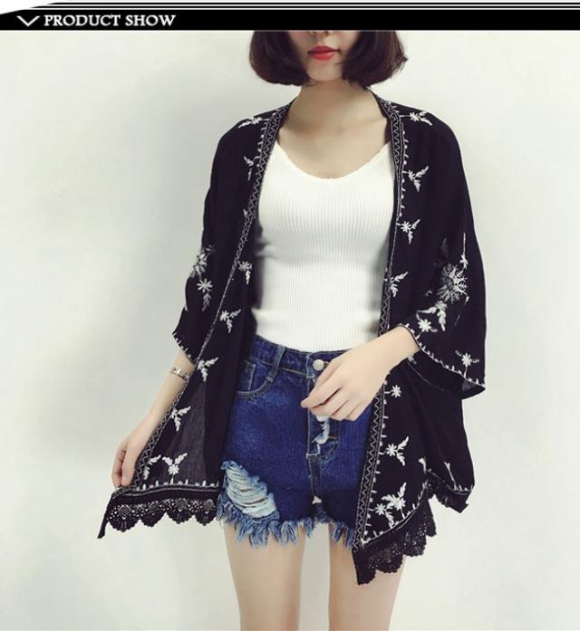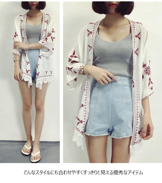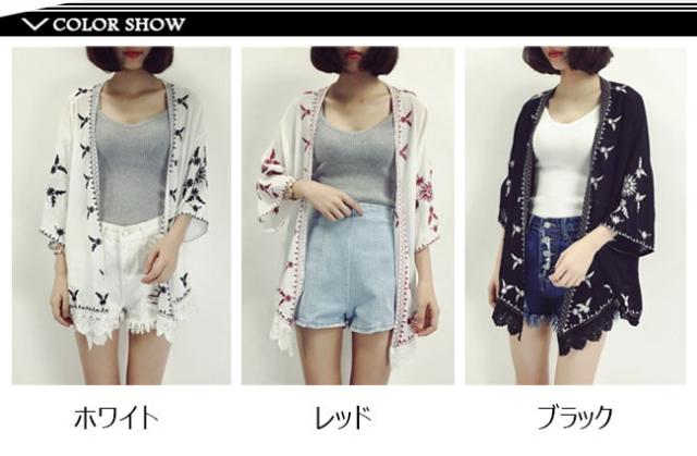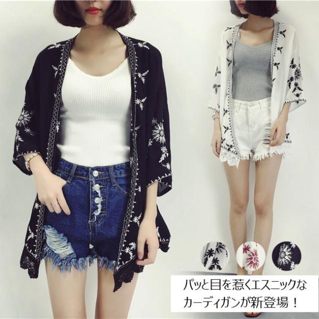 エスニック 刺繍 カーディガン ガウン 雪の結晶柄 フレアスリーブ 裾レース カーデ レディース 羽織り 夏 UV対策 2020春新作