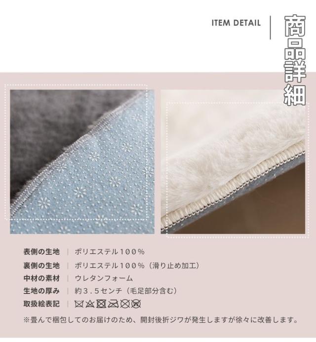 底つき感を感じさせづらいほどよい厚みのウレタン入りで、裏面には滑り止め加工が施されておりペットやお子様のいるご家庭でも安心!