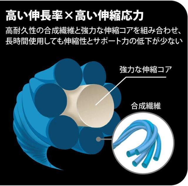 生地の強度・耐張力が高く、長時間安定したサポート力を発揮。