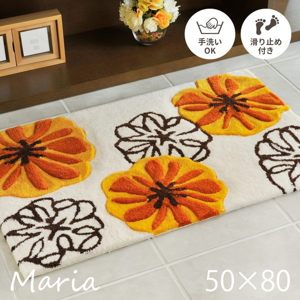 玄関マット ドアマット 室内用 屋内用 小型ラグ 50×80cm マリア 厚手 おしゃれ 花柄 フラワー 滑り止め付き