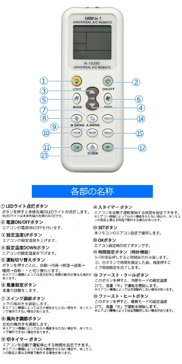エアコン リモコン 汎用 エアコン用リモコン 各社共通 ユニバーサルマルチ 国内メーカー 対応 1000機種対応 紛失 故障 代用品 予備 替え
