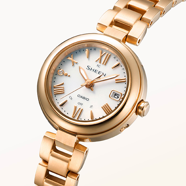 バンドカラーはSHEEN初カラーのライトイエローゴールド(7100TG)、シルバー(7100TD)をご用意。機能面では、日本と中国の標準電波受信機能やタフソーラー、日付表示などを搭載し、利便性も兼ね備えています。更に傷付きにくく、高硬度の反射防止コーティングサファイアガラスを採用しています。軽量で日常生活に使いやすく、煌めくデザインの電波ソーラーウオッチです。