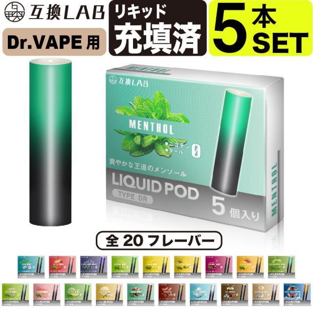 互換LAB ドクターベイプ用 カートリッジ DR.VAPE用 互換ラボ 20フレーバー メンソール ミント 使い捨て リキッド 充填済み コスパ 再生 個包装 電子タバコ 電子たばこ VAPE 爆煙