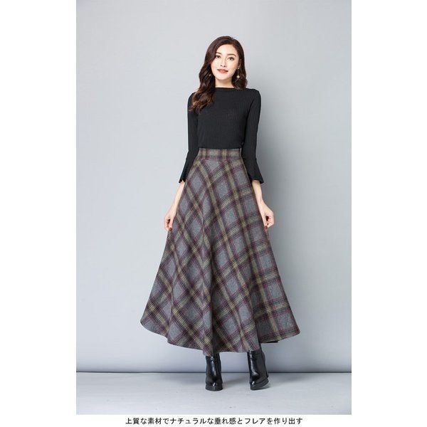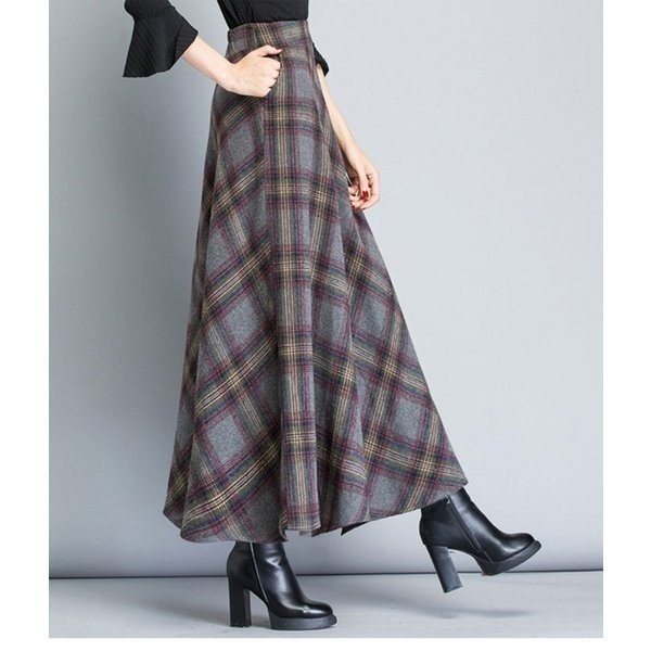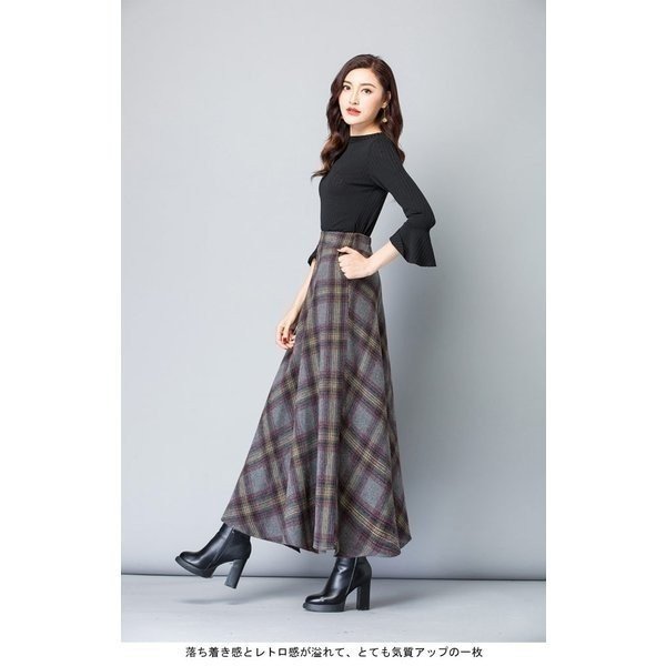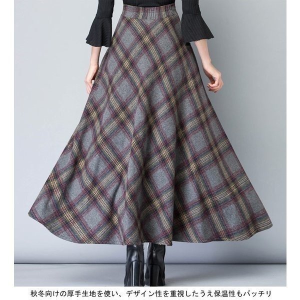 マキシスカート 厚手 レディース ロングスカート チェック柄 ウエストゴム おしゃれ