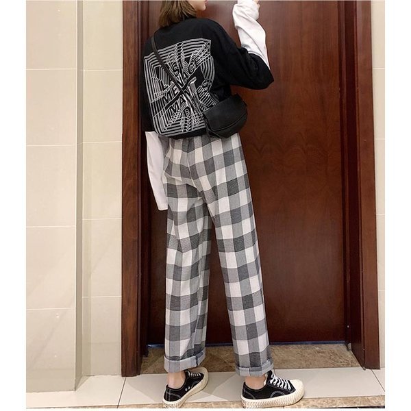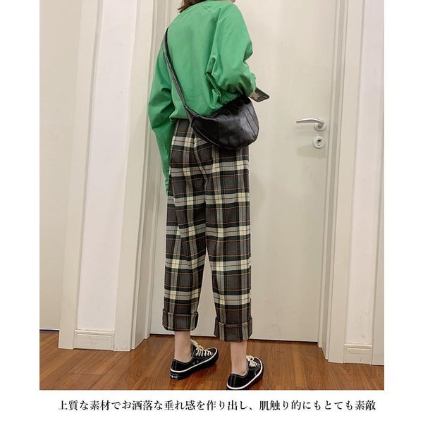 ロングパンツ 春秋 レディース ワイドパンツ コーデ チェック柄 長ズボン カジュアルパンツ ウエストゴム チェック柄パンツ レ