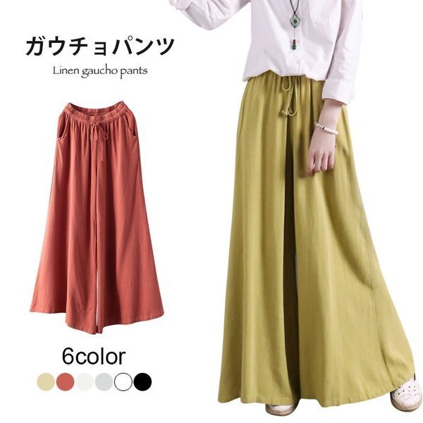 棉麻ガウチョパンツ レディース 棉麻 棉 麻 ガウチョパンツ リネンガウチョ リネン マキシパンツ ロングパンツ ウエストゴム