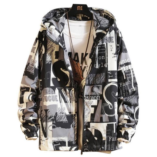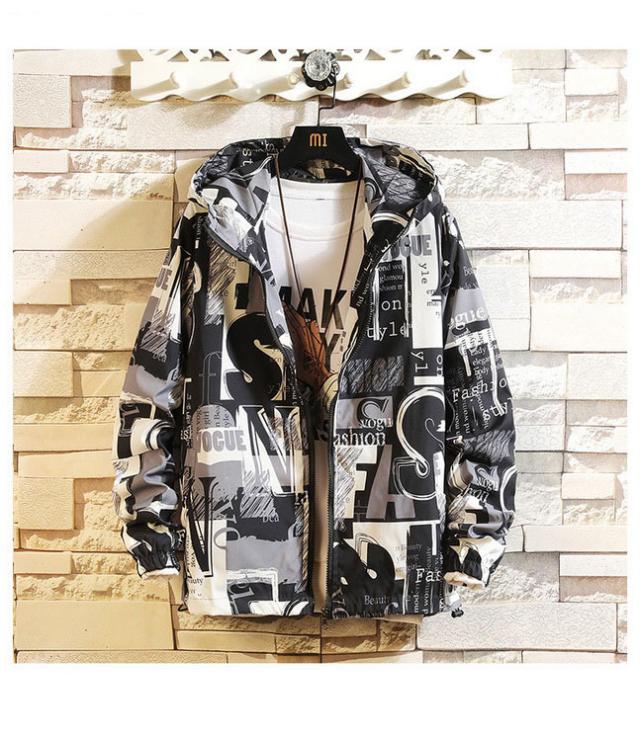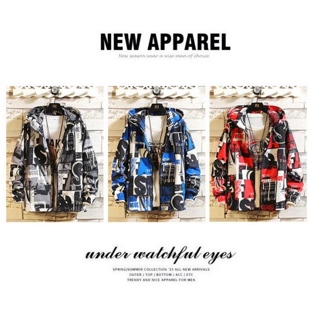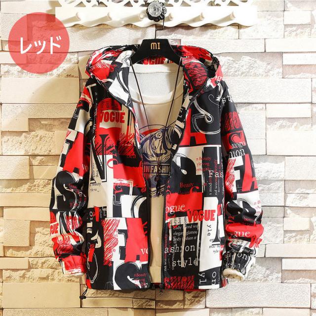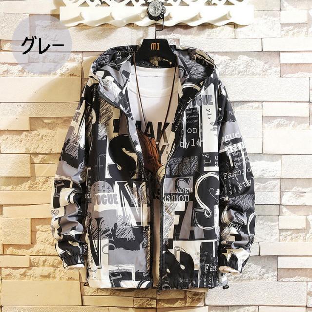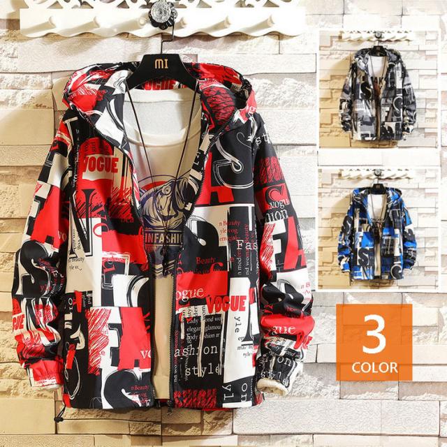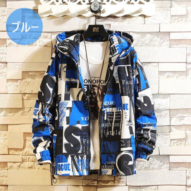マウンテンパーカー メンズ ウィンドブレーカー ジャケット 春物 フード付き ジップアップ ブルゾン プリント 総柄 おしゃれ カジュアル カッコイイ アウター