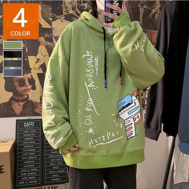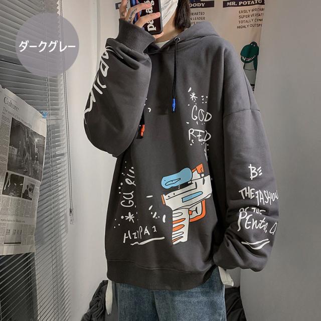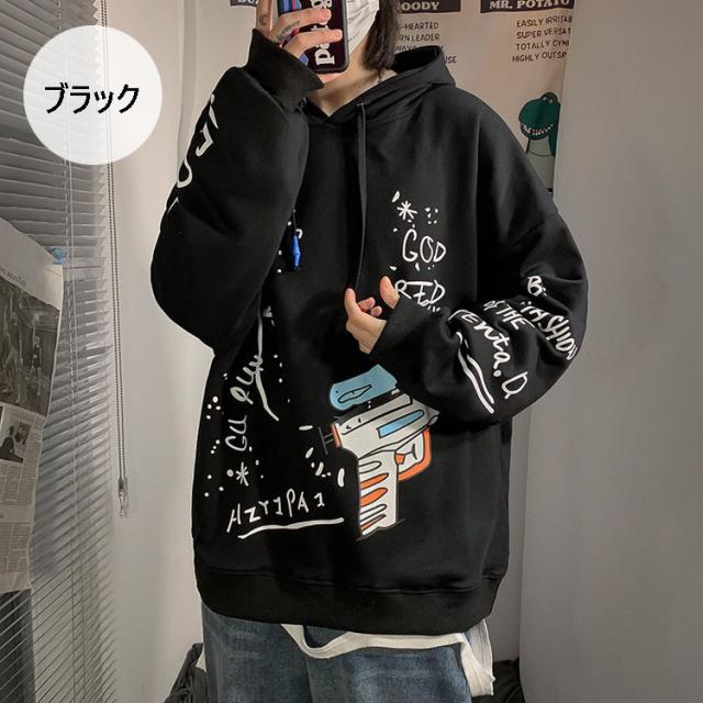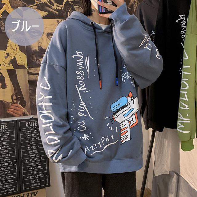 スウェットパーカー メンズ レディース 春秋 長袖 プリントパーカー カップルスウェットパーカー ゆったりプルオーバー 人気 カッコイイ カジュアルトップス