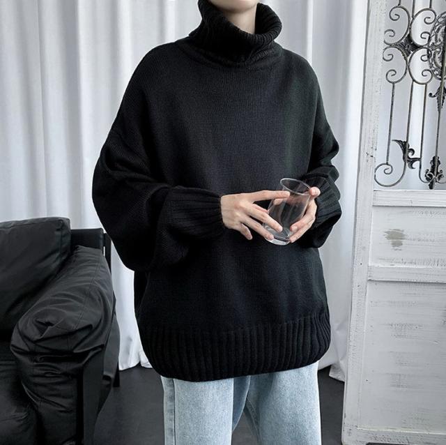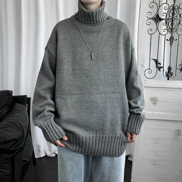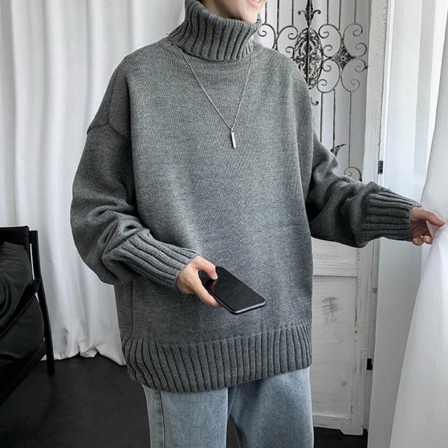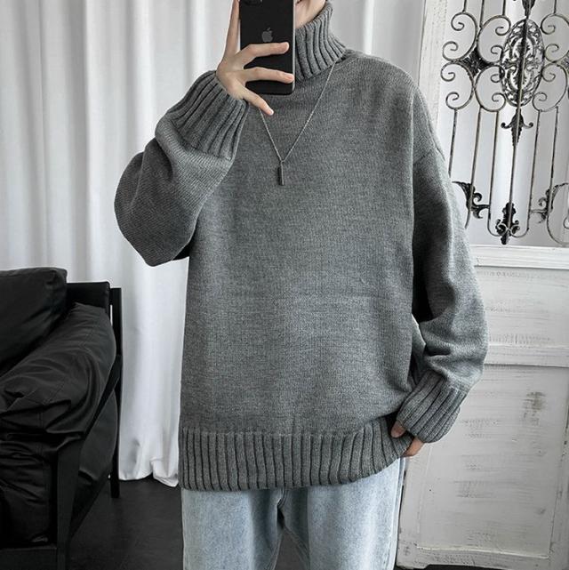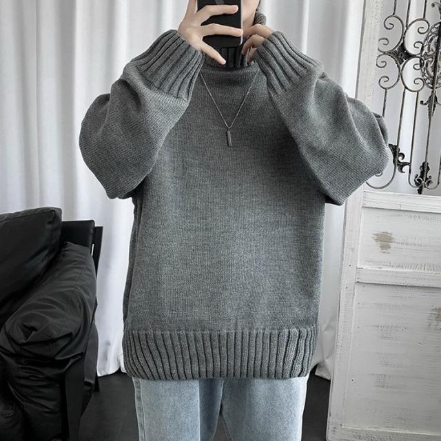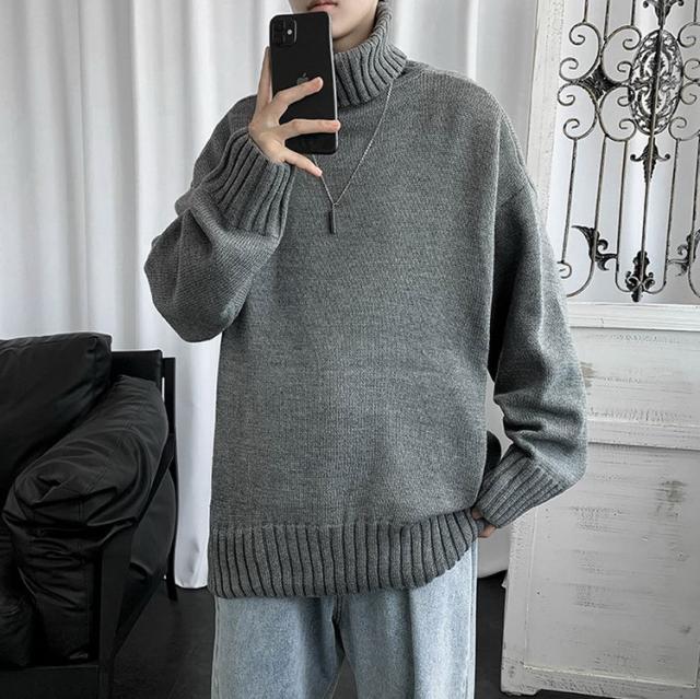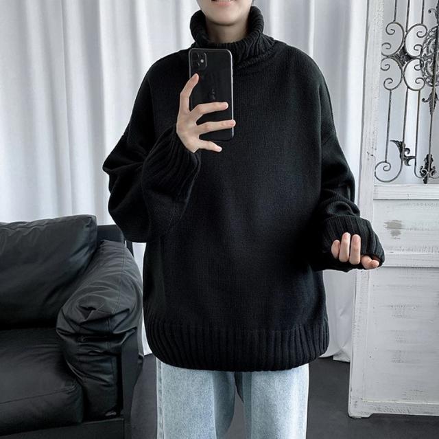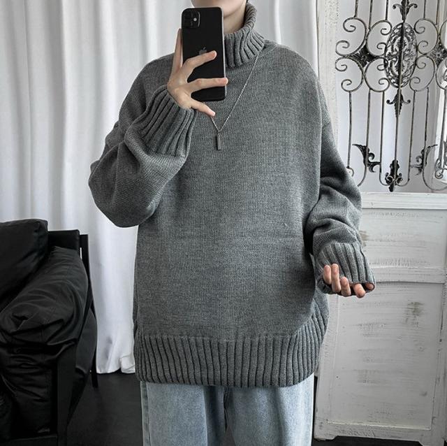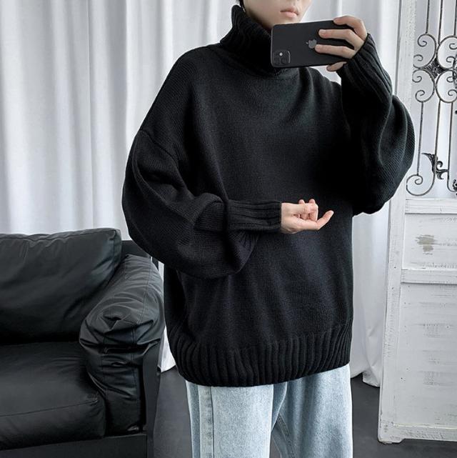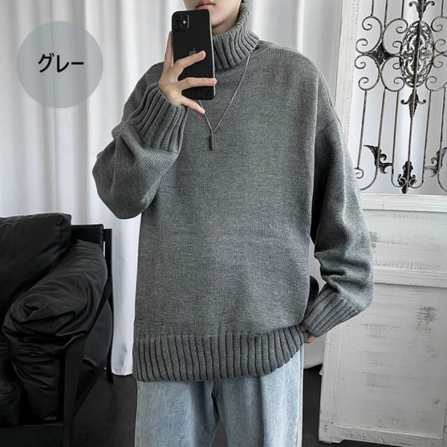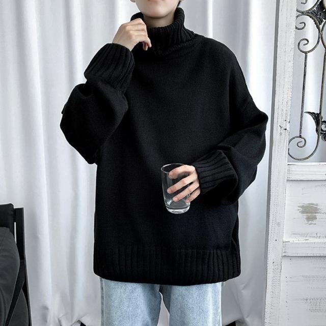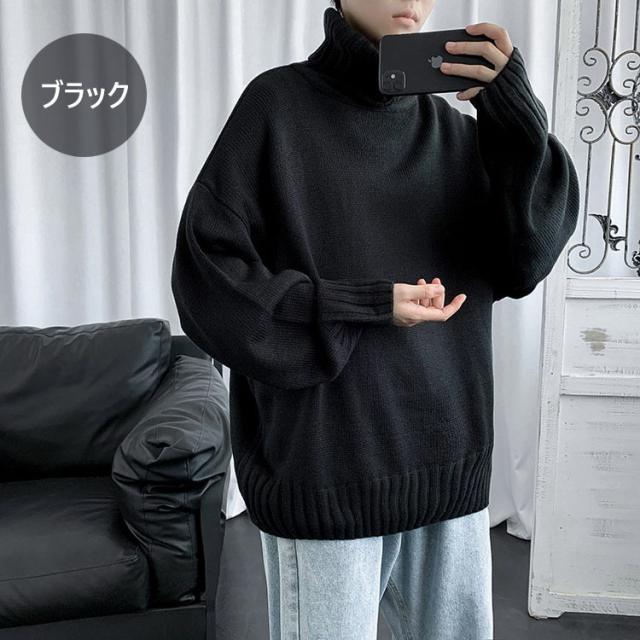 ニットセーター メンズ 長袖 無地セーター 防寒セーター ハイネック ゆったりセーター 秋冬 インナー カットソー 通学通勤 オシャレカジュアルニットトップス