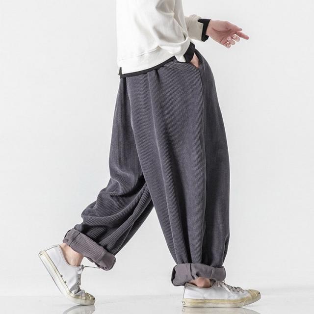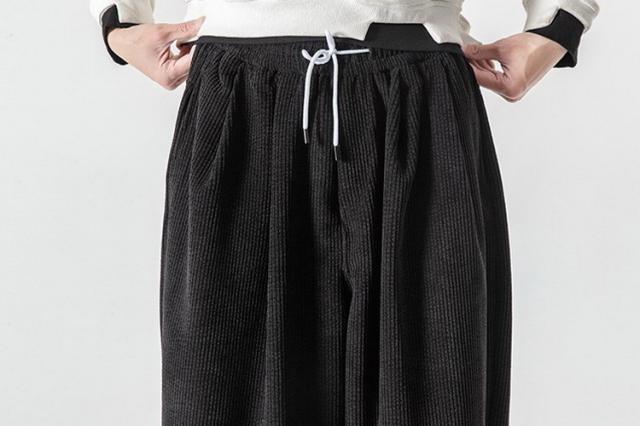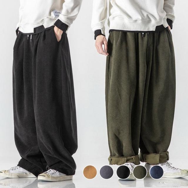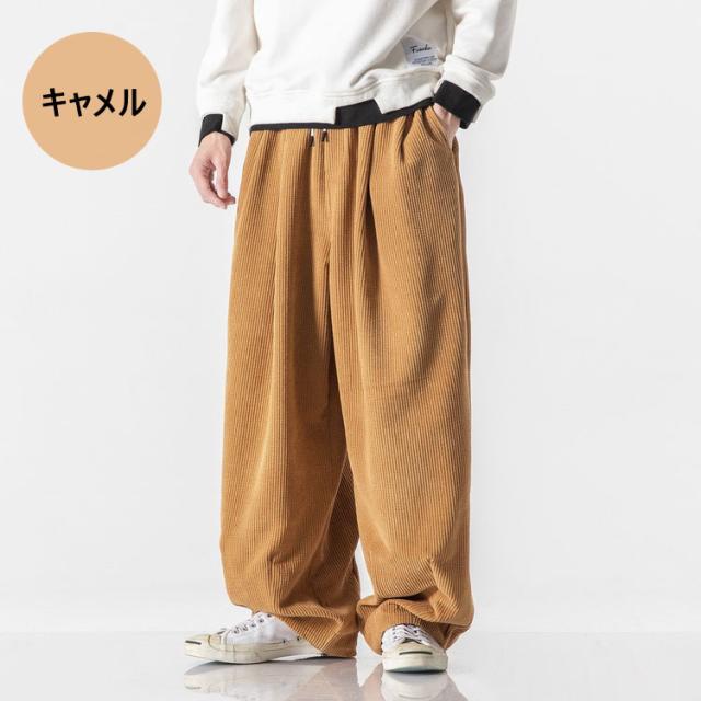 ワイドパンツ メンズ コーデュロイパンツ ウエストゴム ワイドルック 秋冬 オシャレ 無地 ゆったり長ズボン イージーパンツ イージーパンツ 韓国ファッション