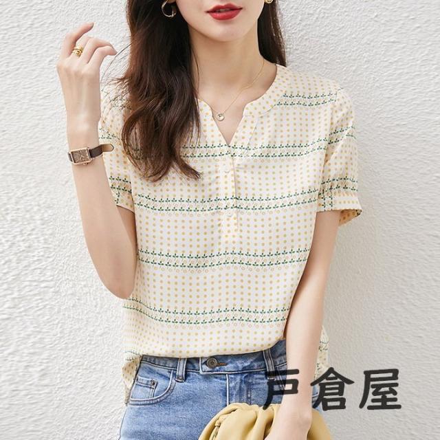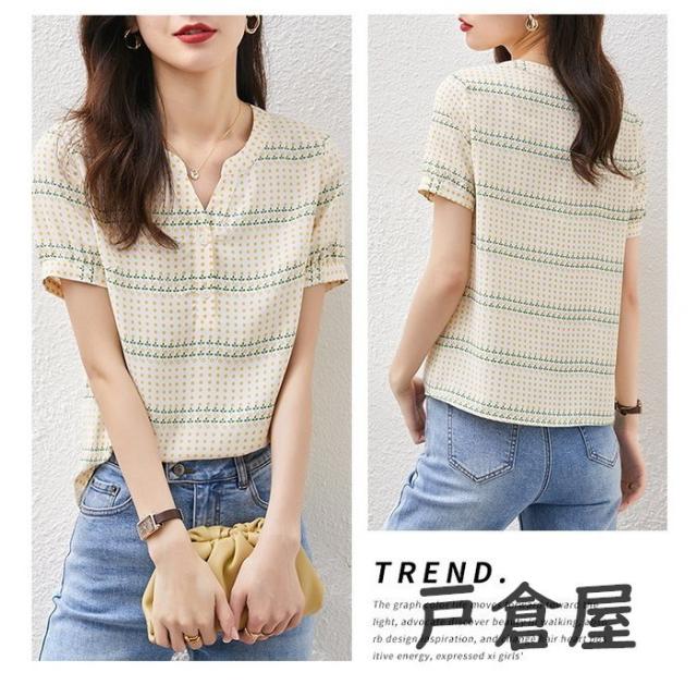 ブラウス レディース 40代 2021 オシャレブラウス シフォンブラウス ドット柄 パフスリーブブラウス 半袖トップス 韓国風 通勤 ゆったりシャツ 2021