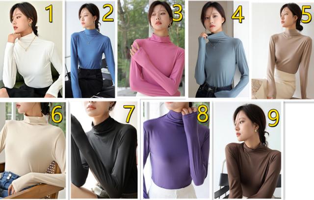 全9色!tシャツ カットソー レディース ハイネックカットソー ハイネックtシャツ 無地tシャツ 長袖 インナー トップス ハーフハイネック 秋冬 シンプル 伸縮性 ストレッチ