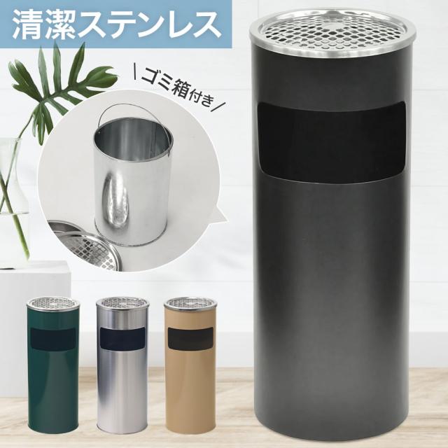 灰皿 スタンド フタ付 屋外 屋内 ゴミ箱 送料無料 ステンレス 業務用 丸型 ステンレス製 ゴミ箱付き ブラック スタンド灰皿 灰皿スタンド
