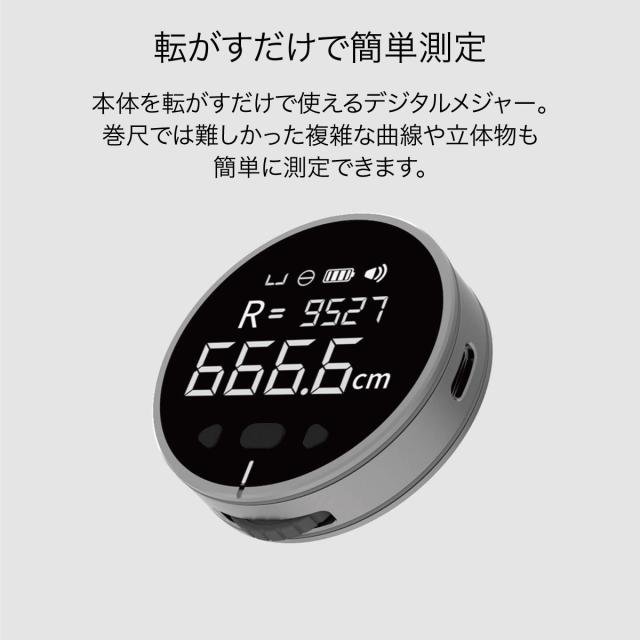 【転がすだけで簡単計測】本体を転がすだけで使えるデジタルメジャー。巻尺では難しかった複雑な曲線や立体物も簡単に測定できます。