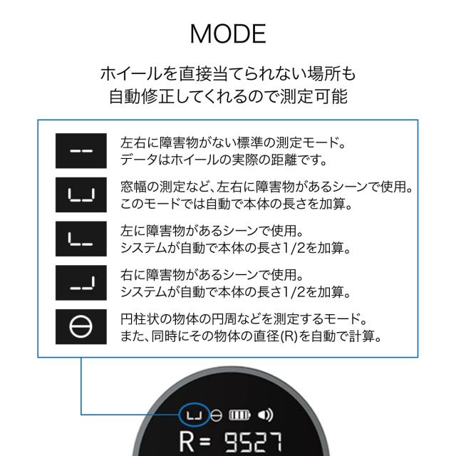 【壁際でも誤差を自動修正】ホイールを直接当てられない壁際等の計測でも、誤差を自動修正しますので正確な計測が行えます。