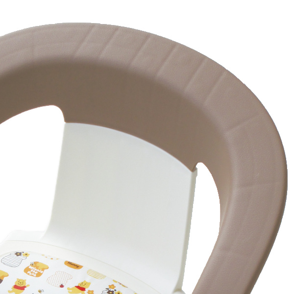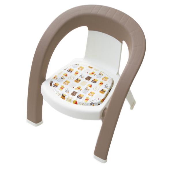 座面はクッション性がありふんわりやさしい座り心地です。マットな質感とブラウンを基調とした落ち着いた色合いに、プーさんとはちみつをモチーフにした柄がアクセントに。大人っぽさをプラスしたデザインでお部屋のインテリアの邪魔をしません。