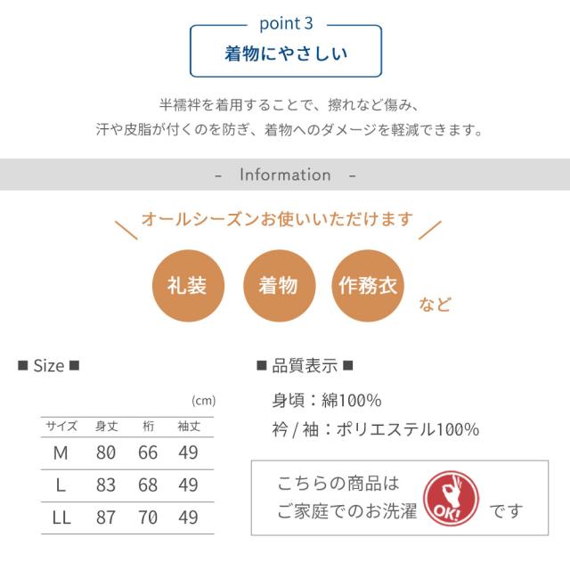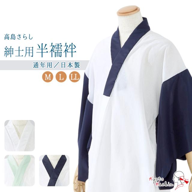 【1枚までメール便発送OK】半襦袢 男性 綿 インナー 和装下着 日本製 通年用 高島さらし 洗える メンズ 紳士 京楽楽 男着 襦袢 白 紺 緑 礼装 婚礼 成人式 前撮り 袴 お洒落 着物 浴衣 甚平 作務衣 M L LL