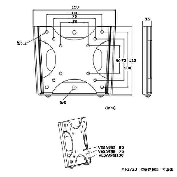 ※取付けは取付工事専門業者にご依頼ください。 ■型式:固定式・壁掛け金具 ■対応サイズ(目安):13〜27インチ ■取付可能寸法:50/75/100mm(VESA規格対応) ■耐重量:25kg ■外形寸法:150(幅)×125(高)×16(奥行)mm ■質量:0.4kg ■付属品: ・取付ネジ ・取付説明書(日本語版) ※記載は商品仕様の一部です。仕様説明不足等の理由での返品はできません。特に適合等は必ずご確認ください。