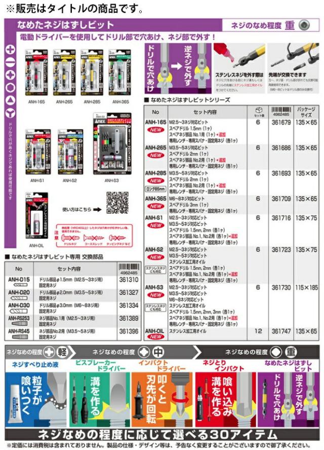 アネックス なめたネジはずしビット専用 スペアネジ部品 No.1用 ANH-RS253 固定用ネジ ANEX 兼古製作所 361389 ネコポス可 ’
