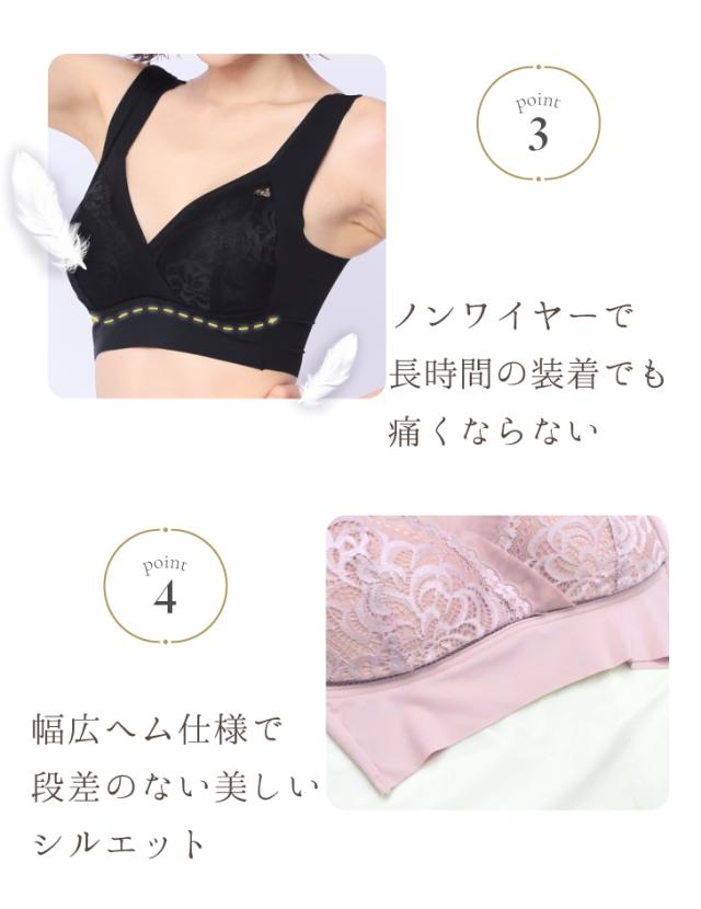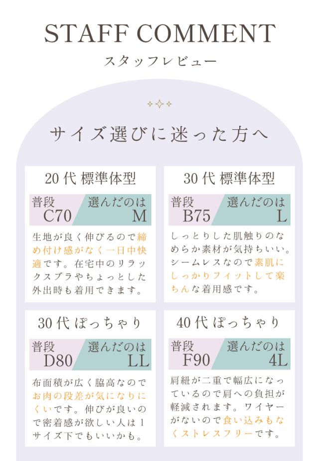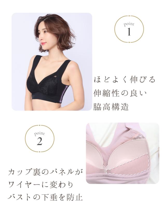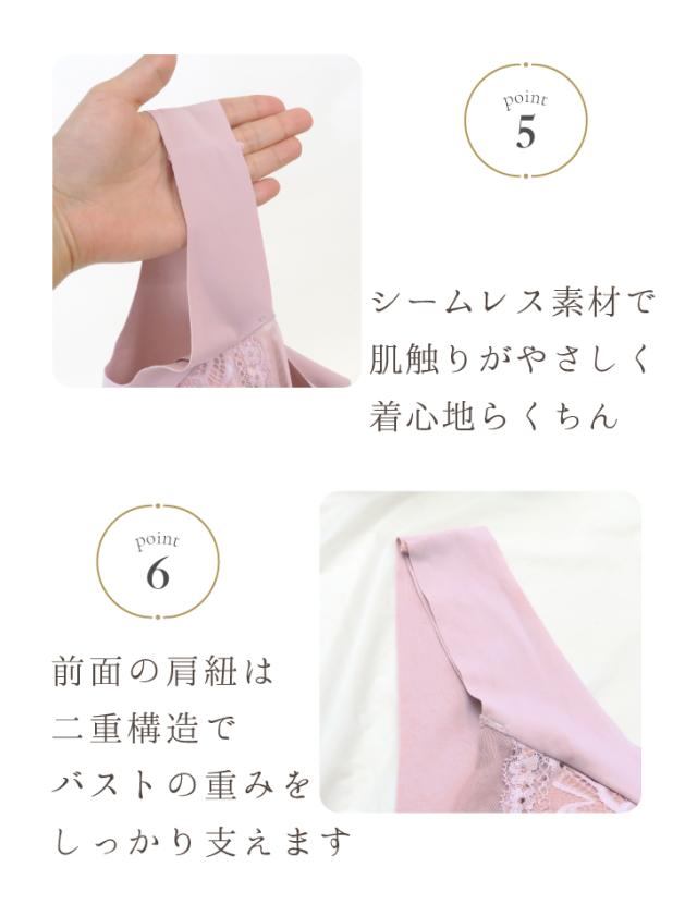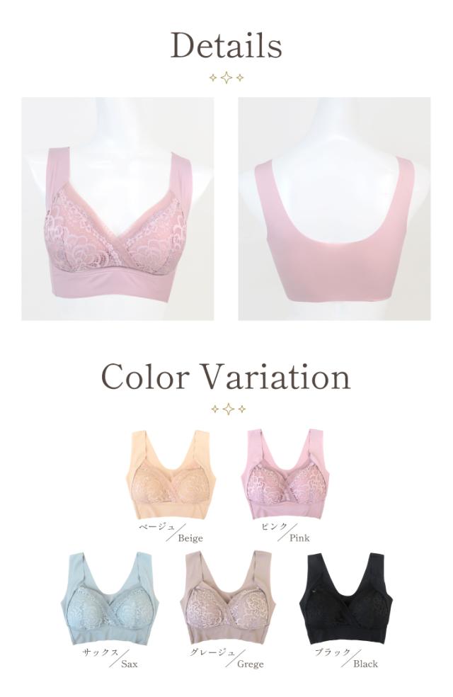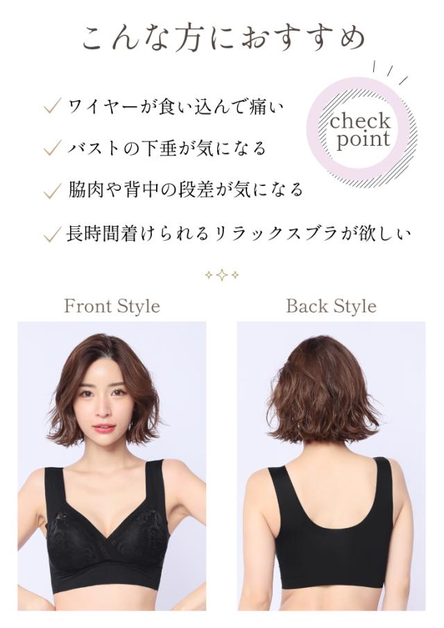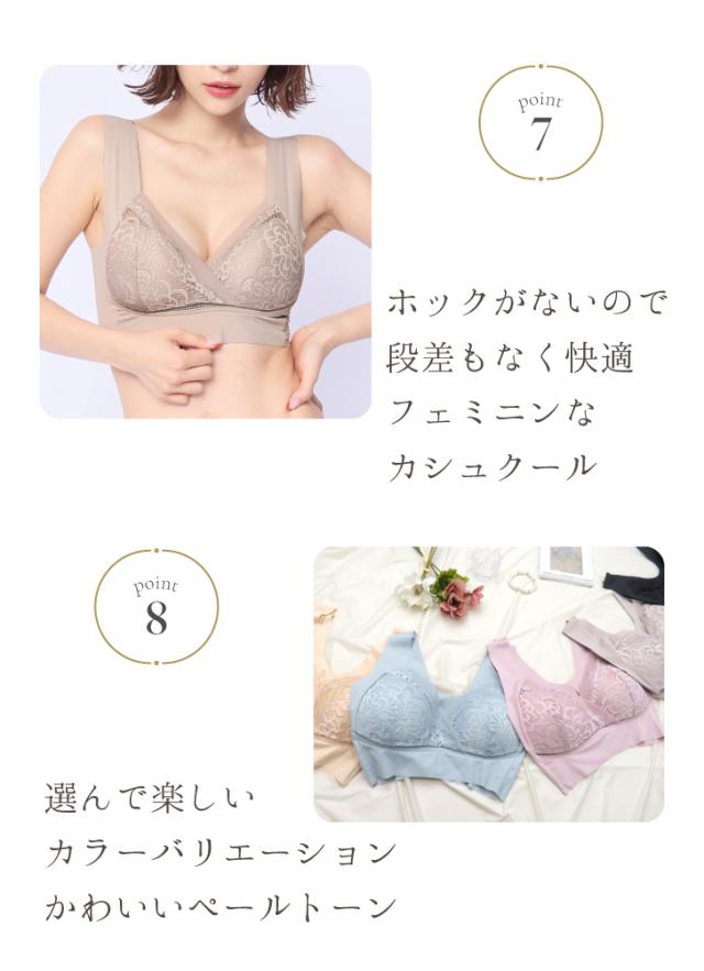 オンにもオフにも使える楽ちんブラ!背中やサイドは伸縮性があり肌触りのいいシームレスの幅広ヘムで段差のない美しいシルエットに。わき汗パッドなどを利用するのにも丁度いい高さです。布面が多く、バストの重みを面で支えて窮屈感を軽減してくれます。女性らしいキレイなシルエットをつくるカシュクールデザイン。ノンワイヤーで長時間つけても痛くなりにくく、ナイトブラとしても活躍してくれます。