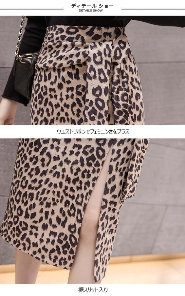 ペンシルスカート レディース ミモレ丈 膝丈 裾スリット レオパード ヒョウ柄 ボトムス 秋 冬 春 2020秋冬新作