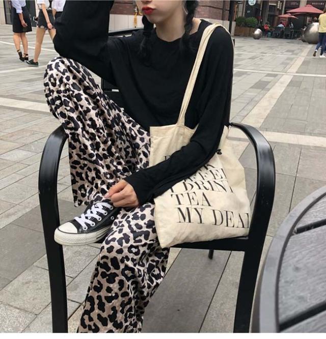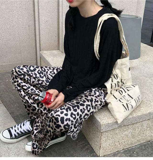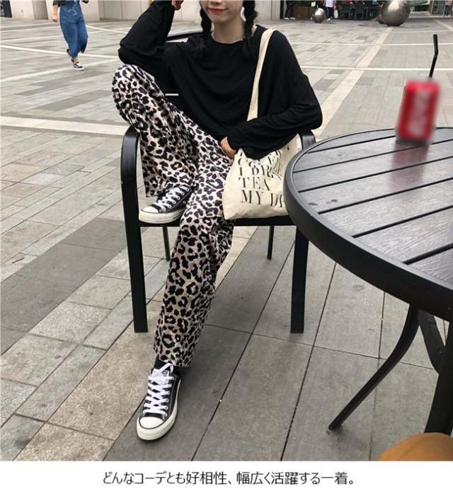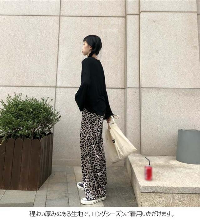 ワイドパンツ レディース ロング丈 ゆったり レオパード ヒョウ柄 ボトムス 秋 冬 春 2020秋冬新作