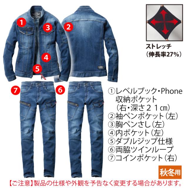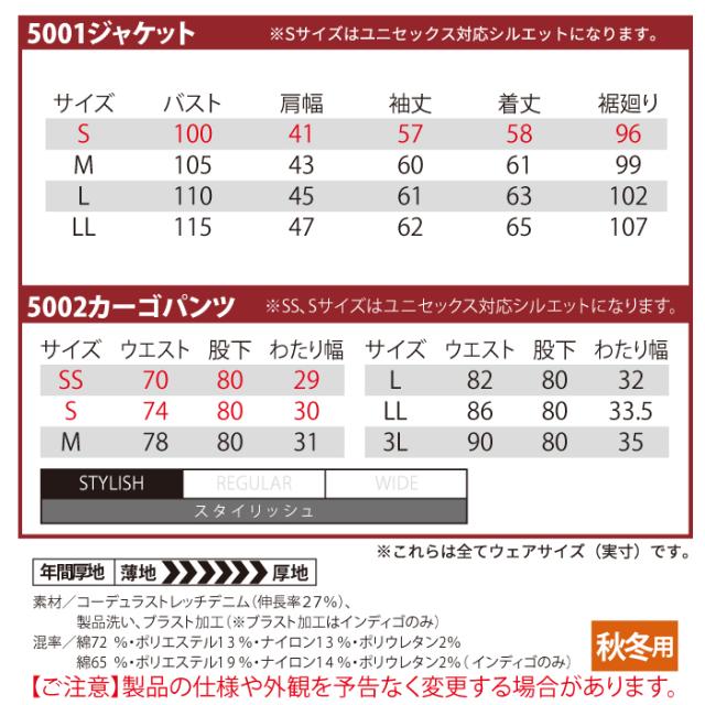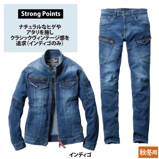 【即日一部あり】バートル BURTLE 作業着 上下セット 5001ジャケット と 5002カーゴパンツ 作業服 おしゃれ 秋冬 デニム フィット 作業ズボン
