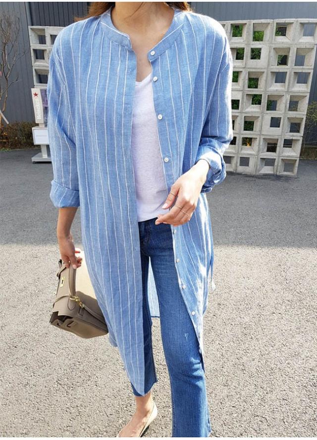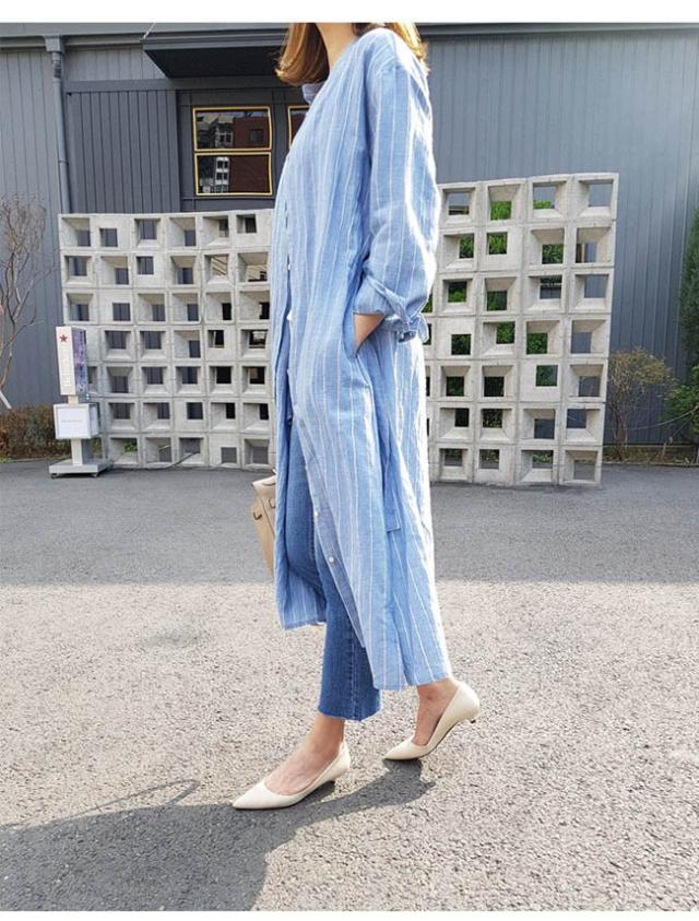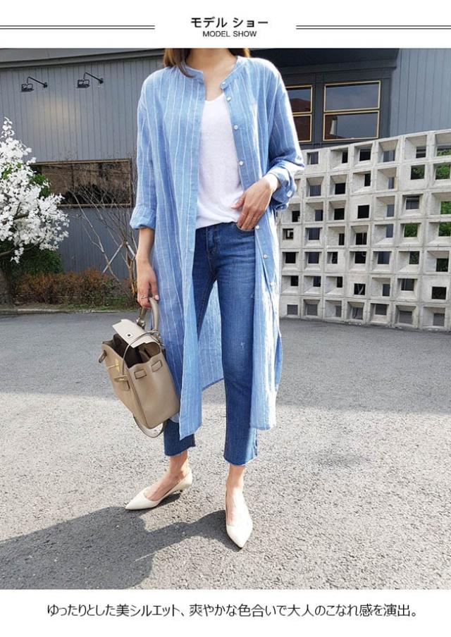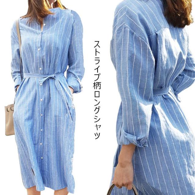 ロングシャツ レディース ロングカーディガン シャツワンピ ワンピース ストライプ柄 長袖 トップス オシャレ 秋 冬 春 2020秋冬新作