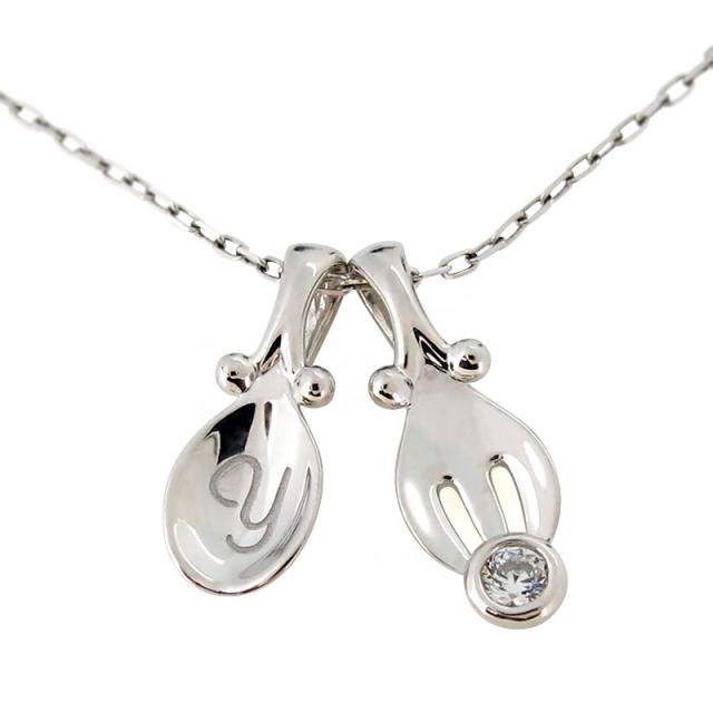銀のスプーン ベビースプーン フォーク ネックレス シルバー 出産 祝い 記念 4月誕生石 ダイヤモンド