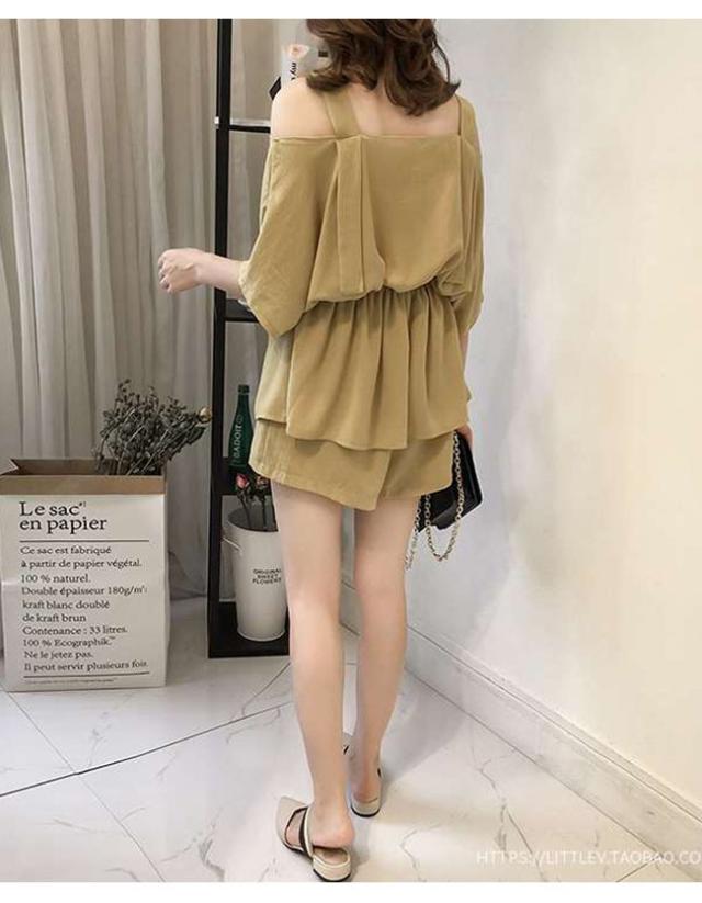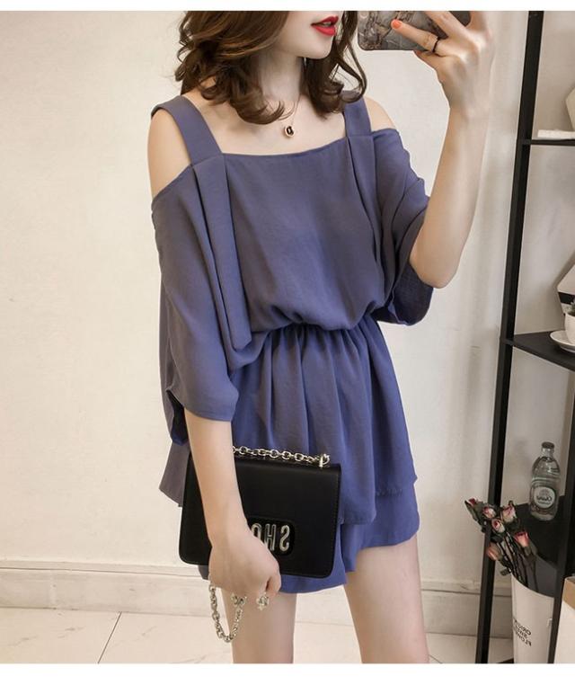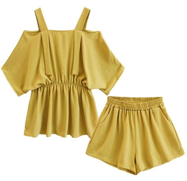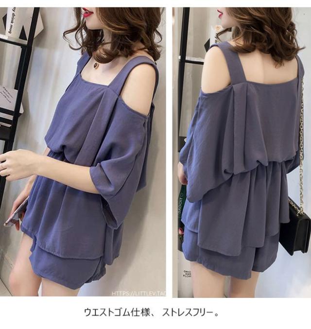 2点セット レディース ブラウス ショートパンツ オフショルダー 大きさイズ 無地 上下セット セットアップ オシャレ 春 夏